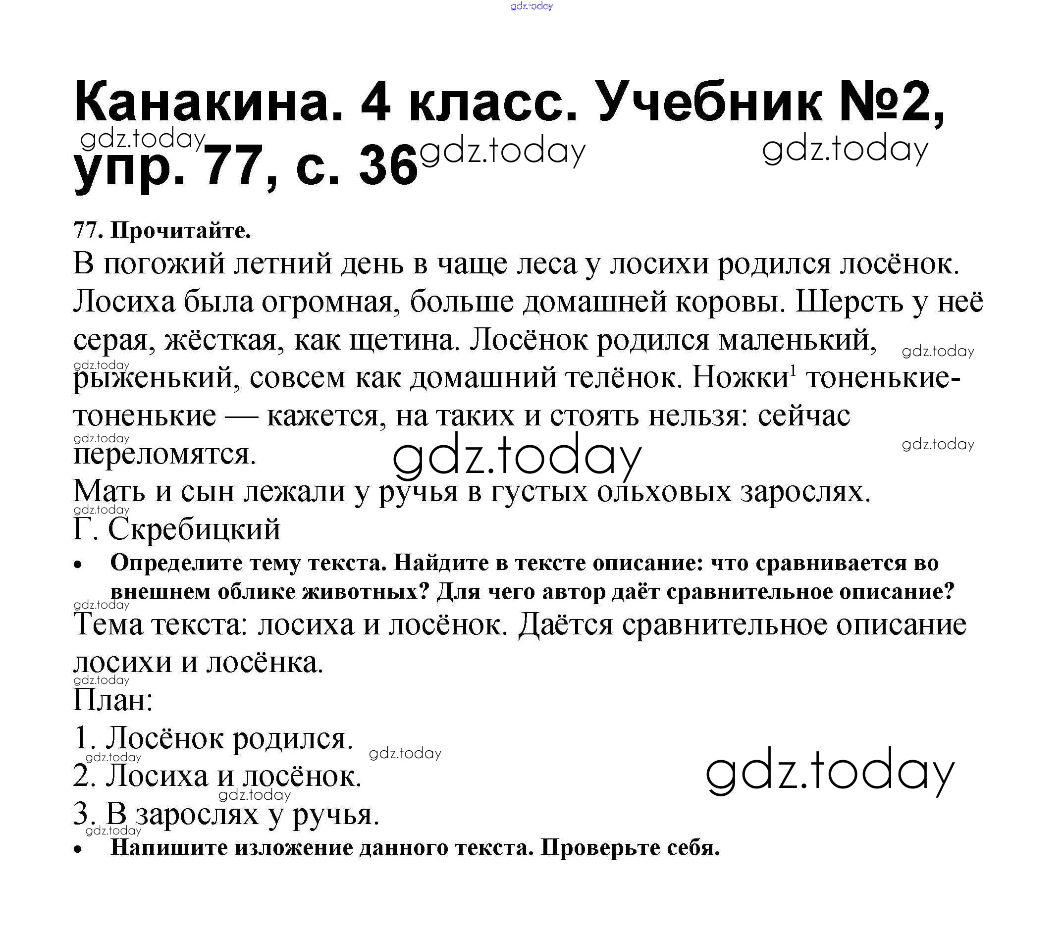 Ответы к Решение к части 2 77 Учебнику по Русскому языку для 4 класса Канакина, Горецкий Просвещение Школа России 2015