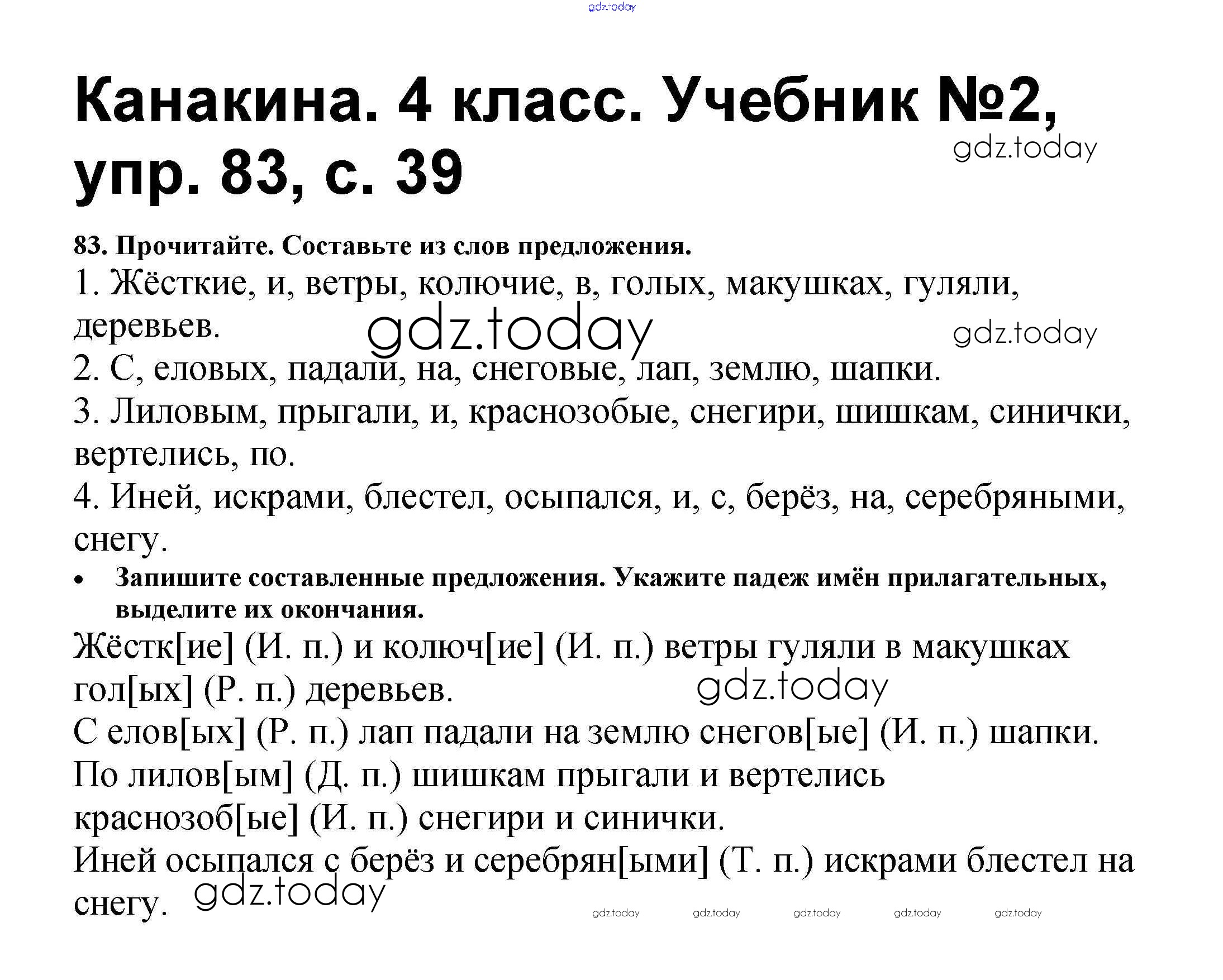 На страницах сайта gdz.today вы найдете учебный и вспомогательный материал, направленный на улучшения знаний школьной программы. ГДЗ - онлайн мир знаний Решение к части 2 83 Учебнику по Русскому языку для 4 класса Канакина, Горецкий Просвещение Школа России 2015