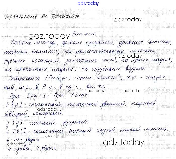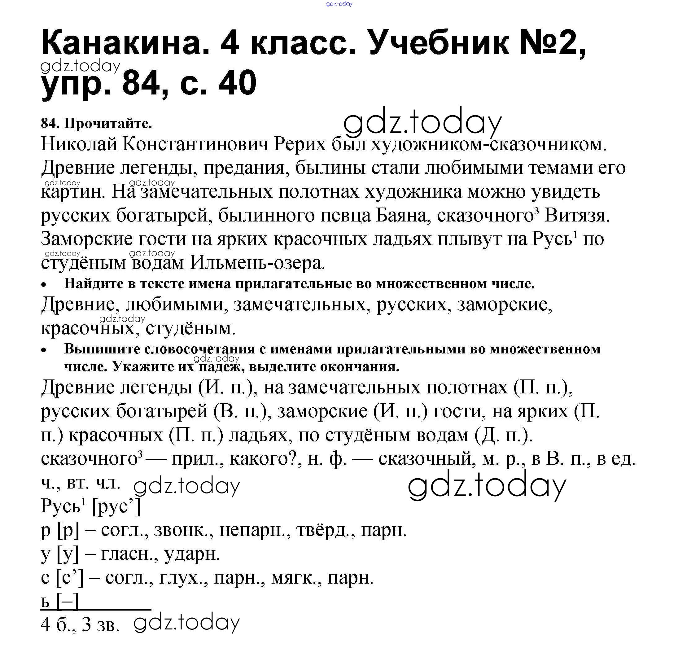 Ответы к Решение к части 2 84 Учебнику по Русскому языку для 4 класса Канакина, Горецкий Просвещение Школа России 2015