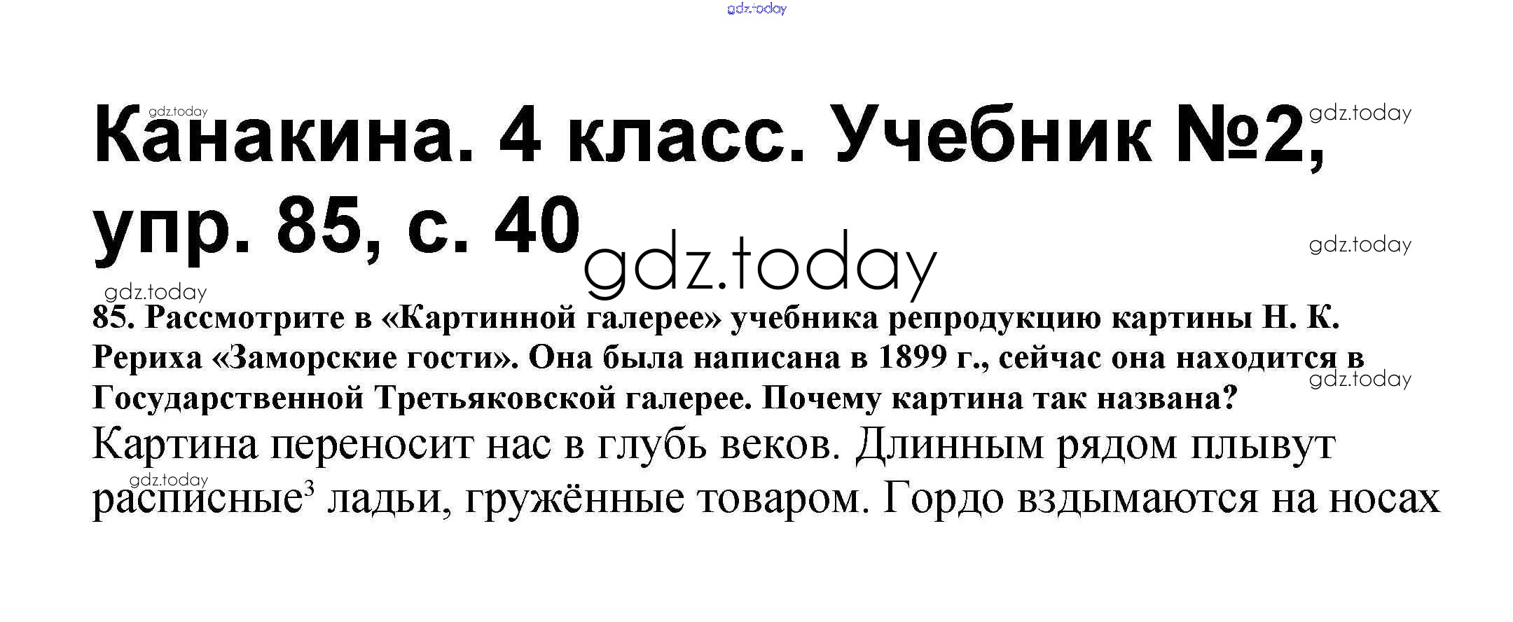 Ответы к Решение к части 2 85 Учебнику по Русскому языку для 4 класса Канакина, Горецкий Просвещение Школа России 2015