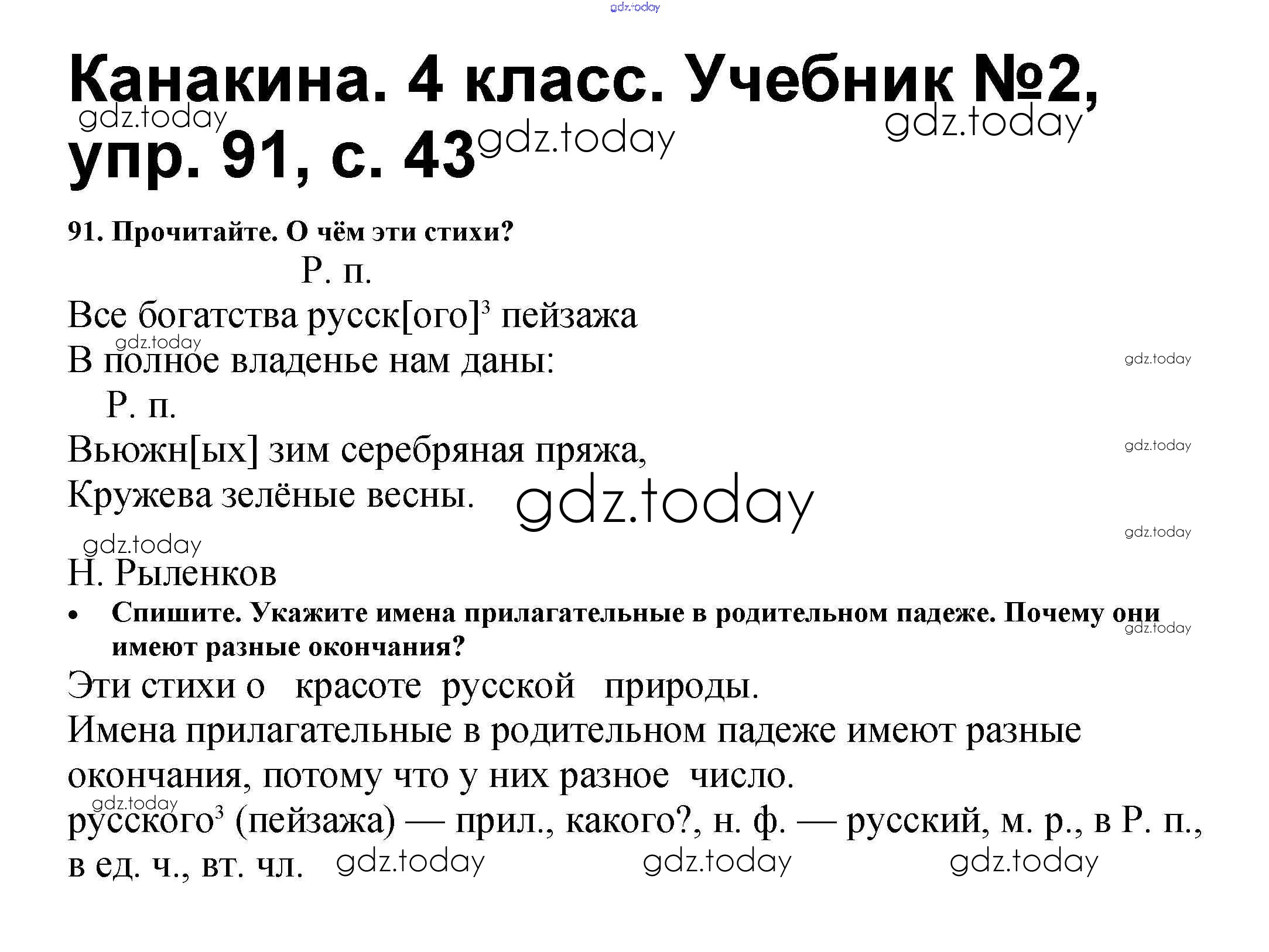 Ответы к Решение к части 2 91 Учебнику по Русскому языку для 4 класса Канакина, Горецкий Просвещение Школа России 2015
