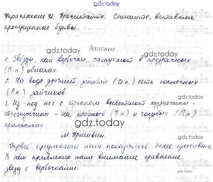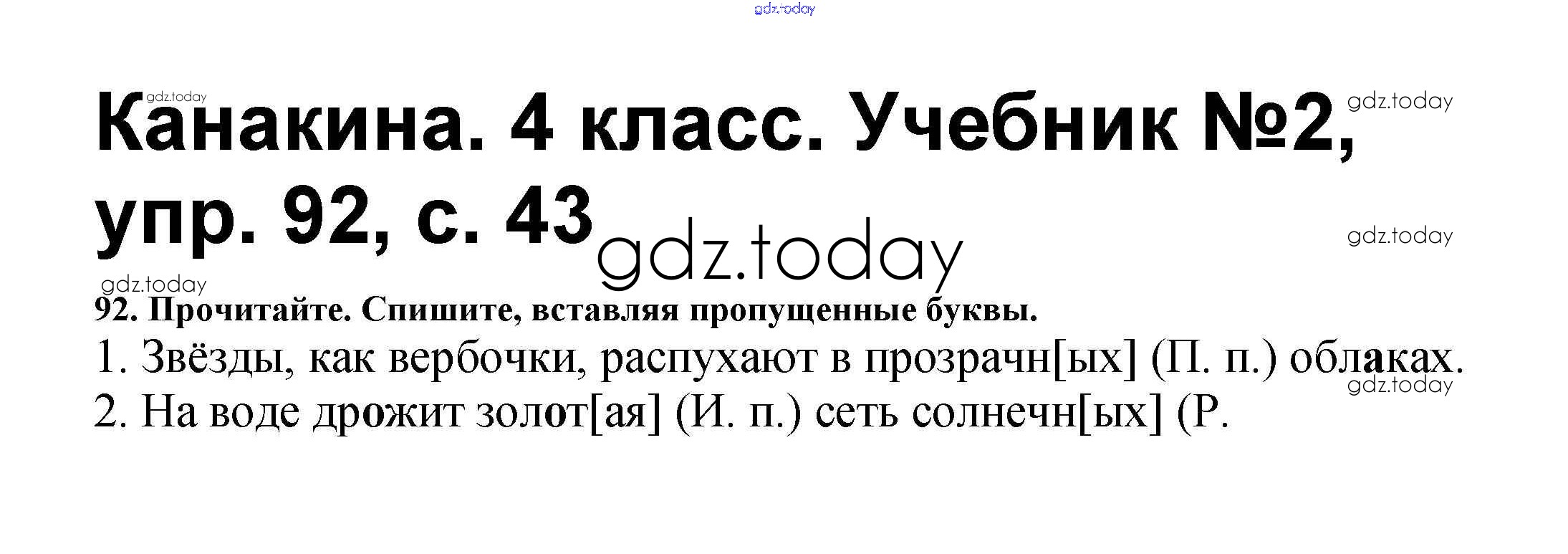 На страницах сайта gdz.today вы найдете учебный и вспомогательный материал, направленный на улучшения знаний школьной программы. ГДЗ - онлайн мир знаний Решение к части 2 92 Учебнику по Русскому языку для 4 класса Канакина, Горецкий Просвещение Школа России 2015