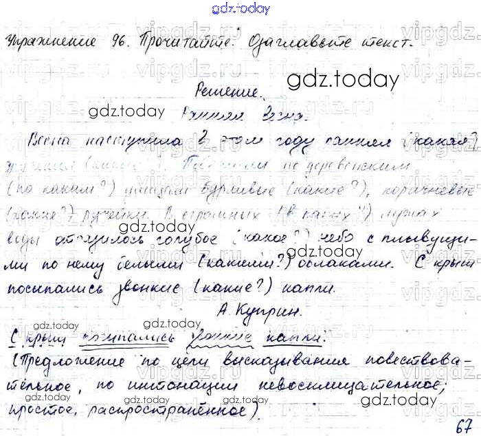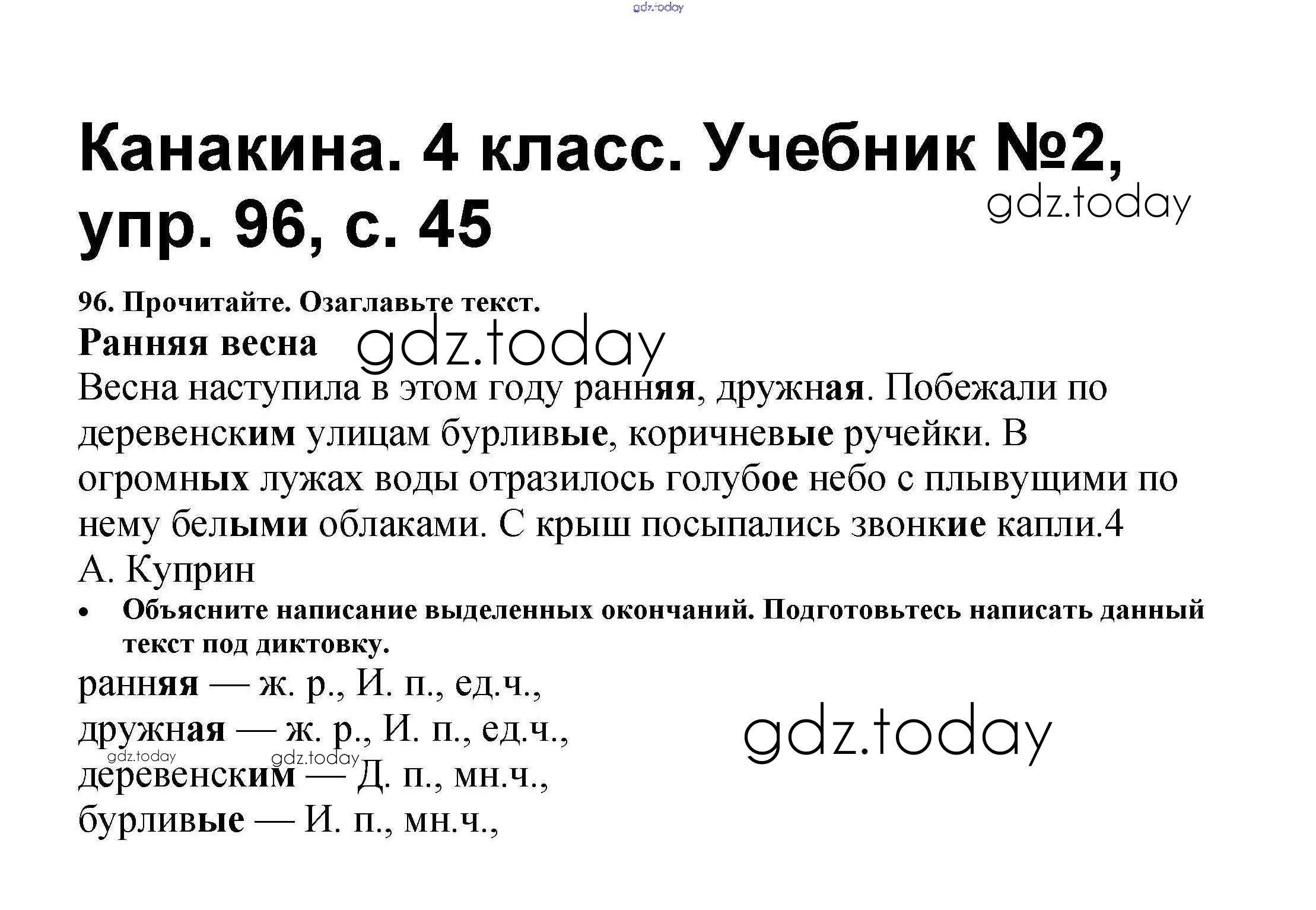 На страницах сайта gdz.today вы найдете учебный и вспомогательный материал, направленный на улучшения знаний школьной программы. ГДЗ - онлайн мир знаний Решение к части 2 96 Учебнику по Русскому языку для 4 класса Канакина, Горецкий Просвещение Школа России 2015