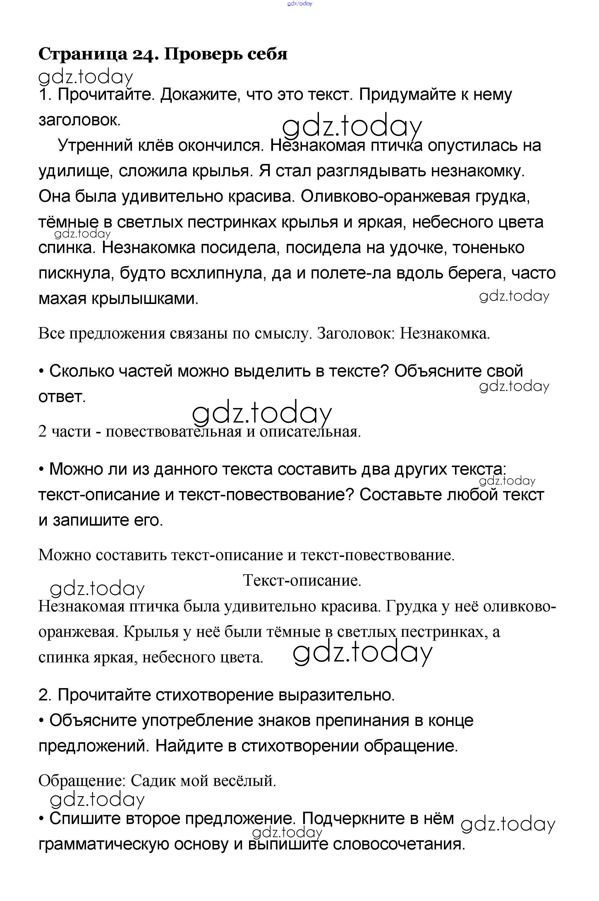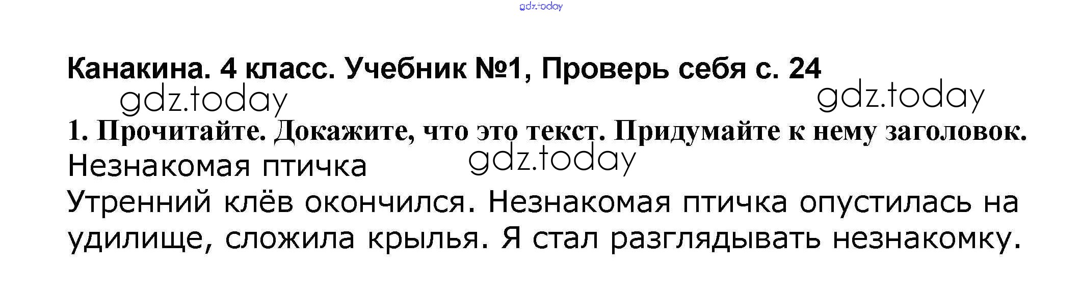На страницах сайта gdz.today вы найдете учебный и вспомогательный материал, направленный на улучшения знаний школьной программы. ГДЗ - онлайн мир знаний Часть 1. Страницы Решение к проверь себя 24 Учебнику по Русскому языку для 4 класса Канакина, Горецкий Просвещение Школа России 2015
