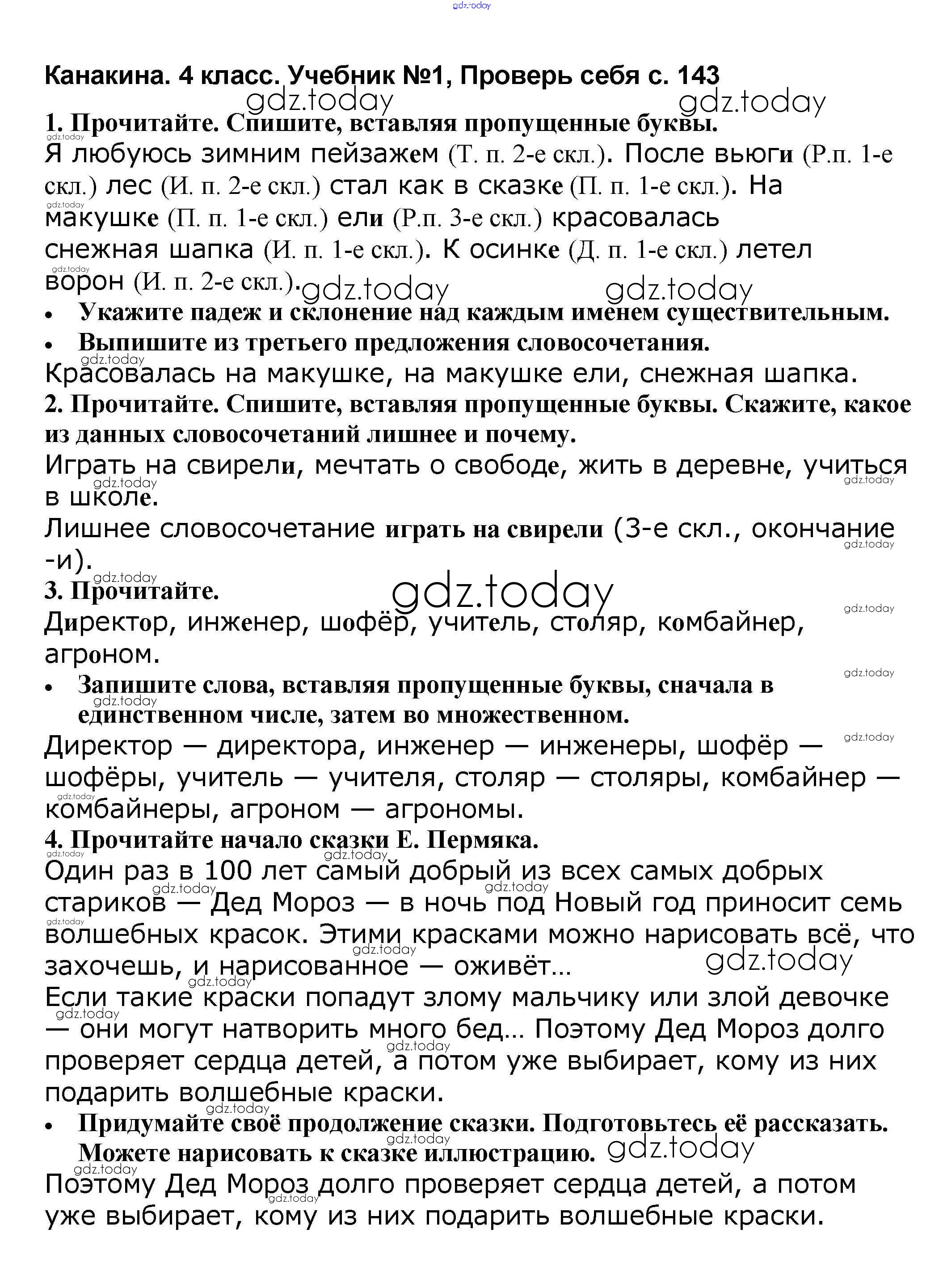 На страницах сайта gdz.today вы найдете учебный и вспомогательный материал, направленный на улучшения знаний школьной программы. ГДЗ - онлайн мир знаний Часть 1. Страницы Решение к проверь себя 143 Учебнику по Русскому языку для 4 класса Канакина, Горецкий Просвещение Школа России 2015
