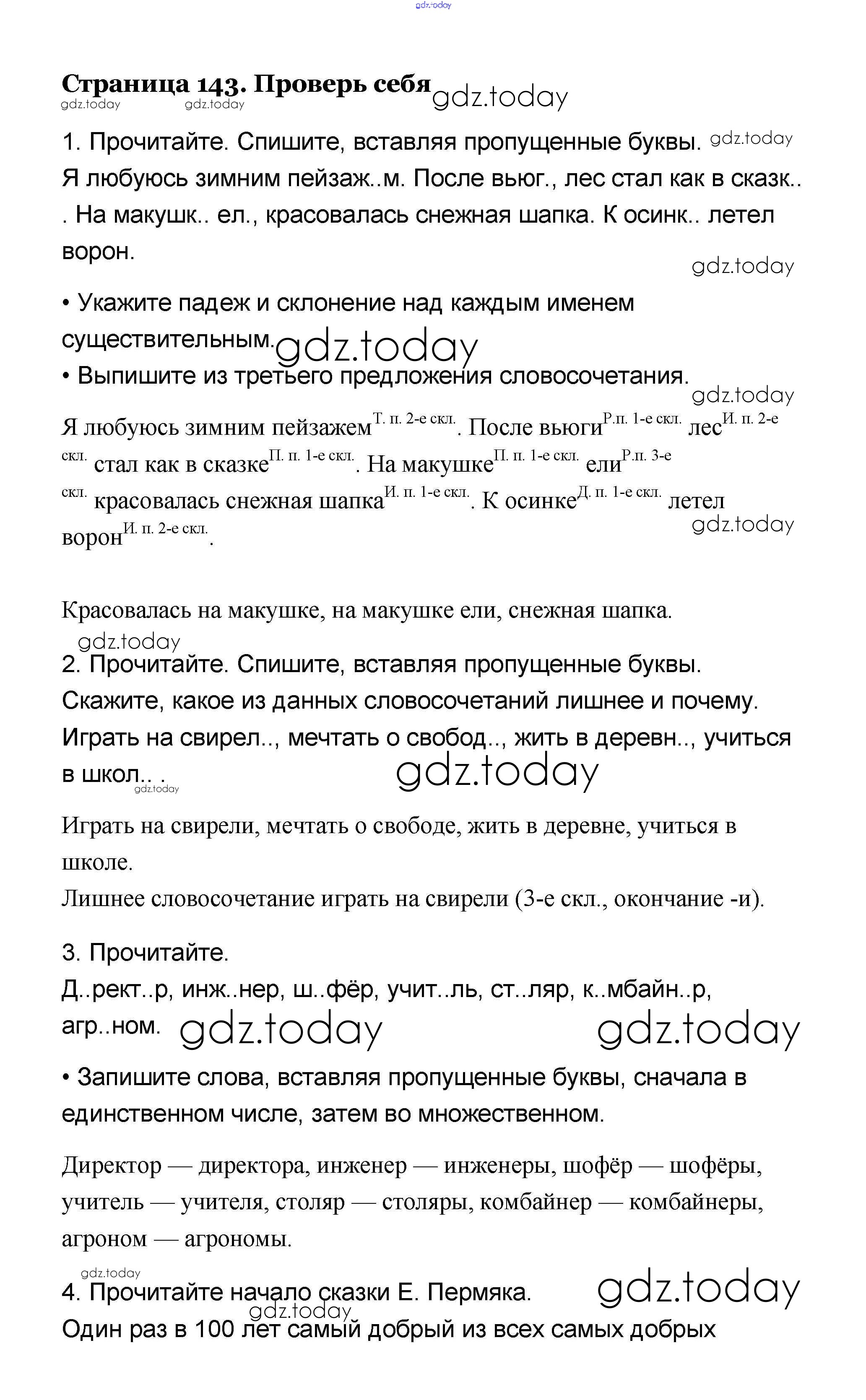 Ответы к Часть 1. Страницы Решение к проверь себя 143 Учебнику по Русскому языку для 4 класса Канакина, Горецкий Просвещение Школа России 2015
