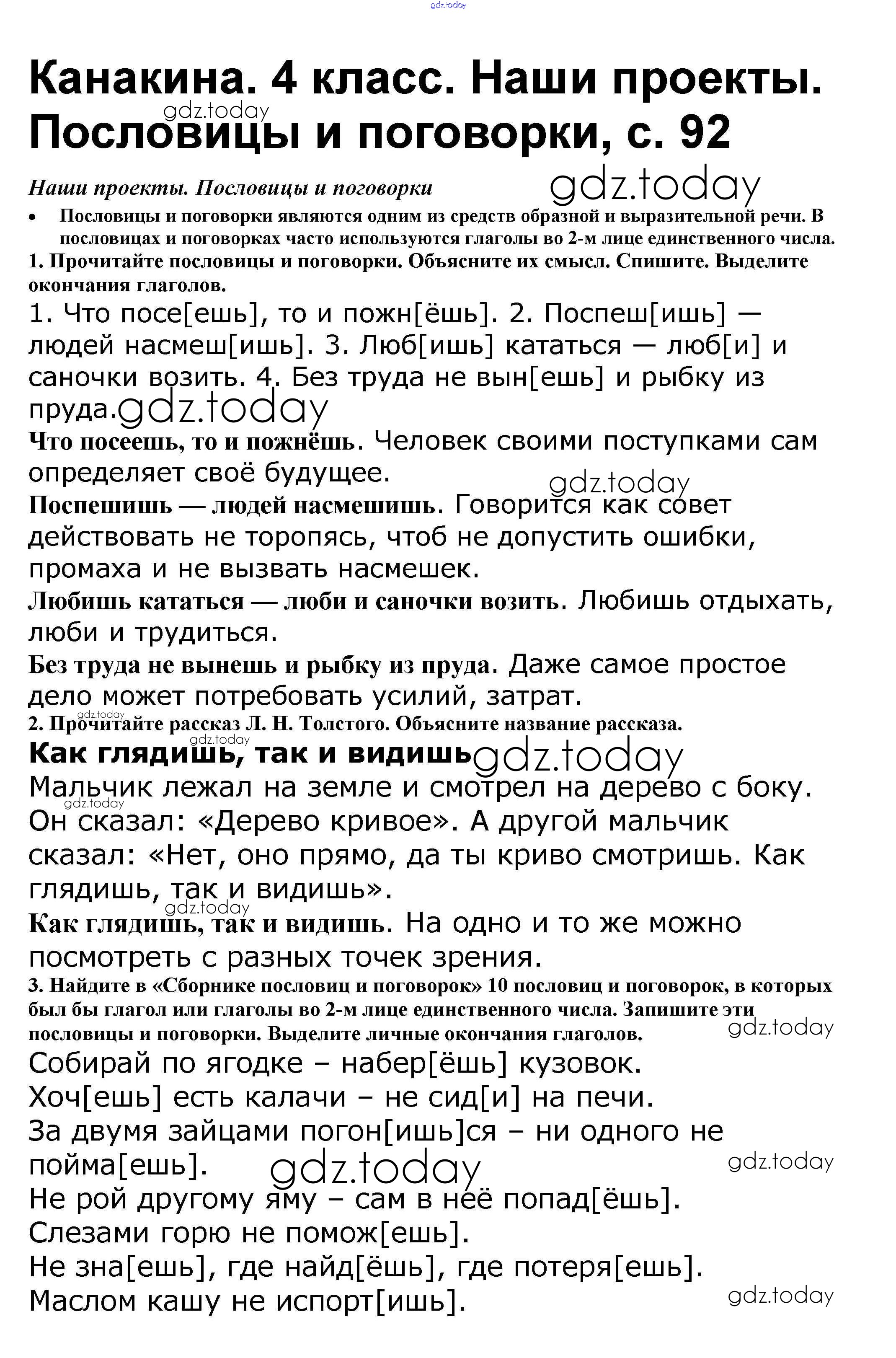 Ответы к Часть 2 Наши проекты Пословицы и поговорки Учебнику по Русскому языку для 4 класса Канакина, Горецкий Просвещение Школа России 2015
