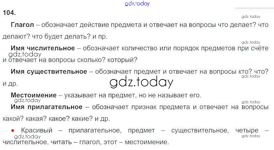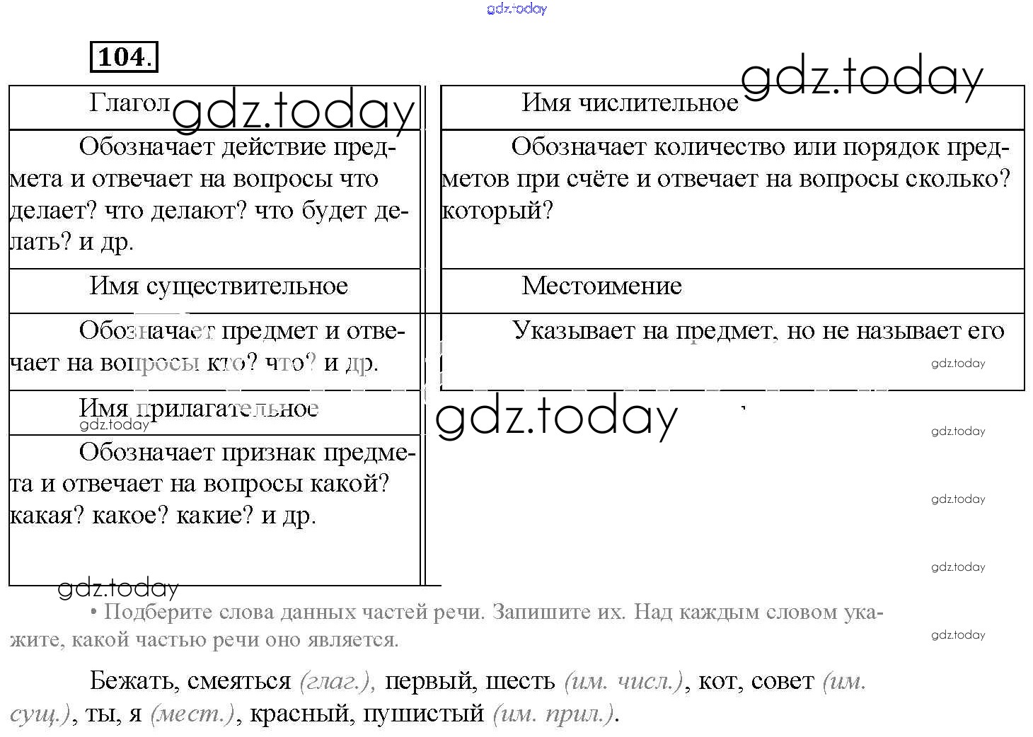 На страницах сайта gdz.today вы найдете учебный и вспомогательный материал, направленный на улучшения знаний школьной программы. ГДЗ - онлайн мир знаний Часть 1. Решение к заданиям 104 Рабочей тетради по Русскому языку для 4 класса Канакина Просвещение Школа России 2013
