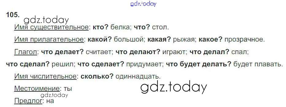 На страницах сайта gdz.today вы найдете учебный и вспомогательный материал, направленный на улучшения знаний школьной программы. ГДЗ - онлайн мир знаний Часть 1. Решение к заданиям 105 Рабочей тетради по Русскому языку для 4 класса Канакина Просвещение Школа России 2013