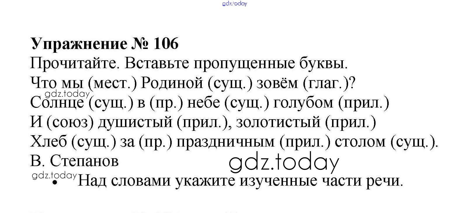 На страницах сайта gdz.today вы найдете учебный и вспомогательный материал, направленный на улучшения знаний школьной программы. ГДЗ - онлайн мир знаний Часть 1. Решение к заданиям 106 Рабочей тетради по Русскому языку для 4 класса Канакина Просвещение Школа России 2013