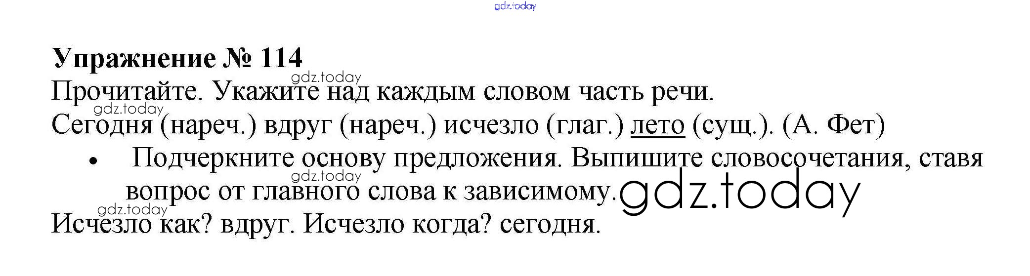 На страницах сайта gdz.today вы найдете учебный и вспомогательный материал, направленный на улучшения знаний школьной программы. ГДЗ - онлайн мир знаний Часть 1. Решение к заданиям 114 Рабочей тетради по Русскому языку для 4 класса Канакина Просвещение Школа России 2013