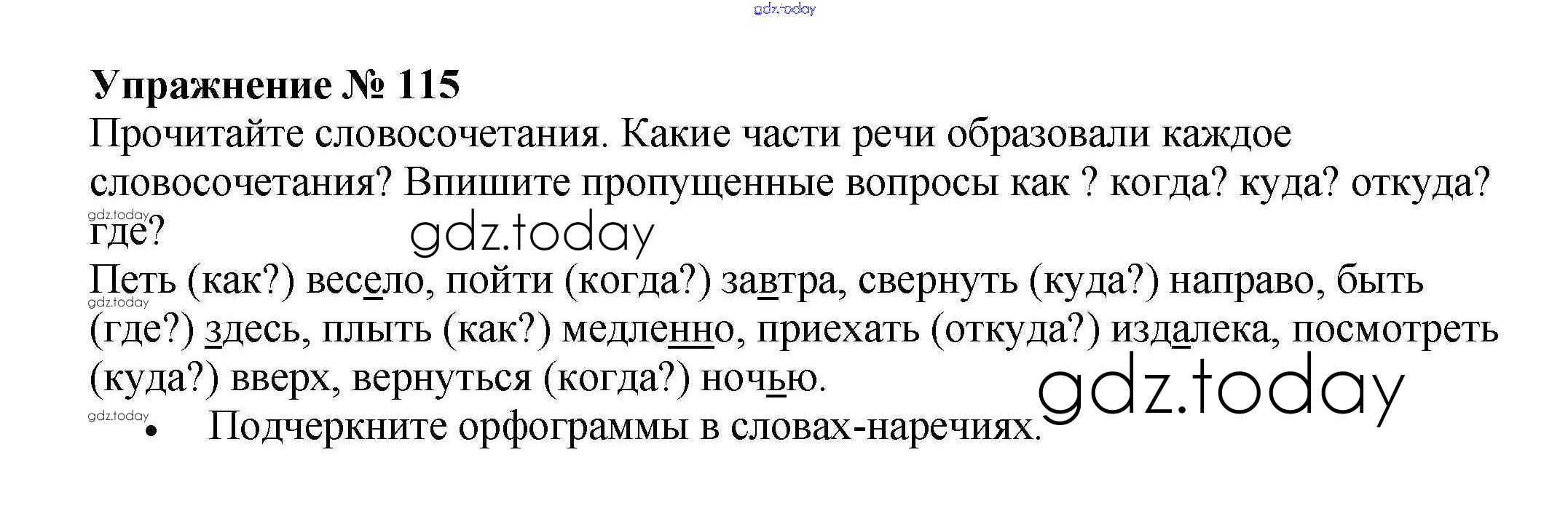 На страницах сайта gdz.today вы найдете учебный и вспомогательный материал, направленный на улучшения знаний школьной программы. ГДЗ - онлайн мир знаний Часть 1. Решение к заданиям 115 Рабочей тетради по Русскому языку для 4 класса Канакина Просвещение Школа России 2013