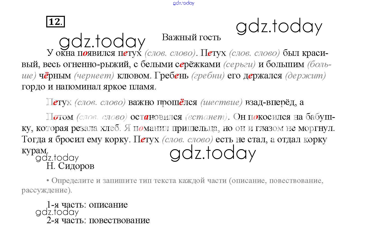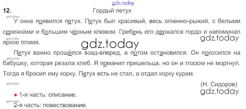 На страницах сайта gdz.today вы найдете учебный и вспомогательный материал, направленный на улучшения знаний школьной программы. ГДЗ - онлайн мир знаний Часть 1. Решение к заданиям 12 Рабочей тетради по Русскому языку для 4 класса Канакина Просвещение Школа России 2013