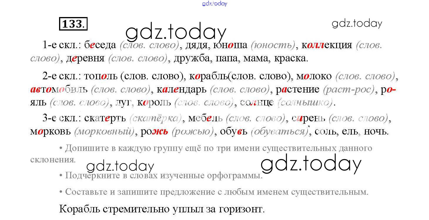 На страницах сайта gdz.today вы найдете учебный и вспомогательный материал, направленный на улучшения знаний школьной программы. ГДЗ - онлайн мир знаний Часть 1. Решение к заданиям 133 Рабочей тетради по Русскому языку для 4 класса Канакина Просвещение Школа России 2013