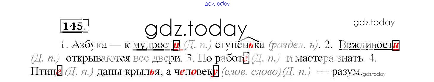 На страницах сайта gdz.today вы найдете учебный и вспомогательный материал, направленный на улучшения знаний школьной программы. ГДЗ - онлайн мир знаний Часть 1. Решение к заданиям 145 Рабочей тетради по Русскому языку для 4 класса Канакина Просвещение Школа России 2013