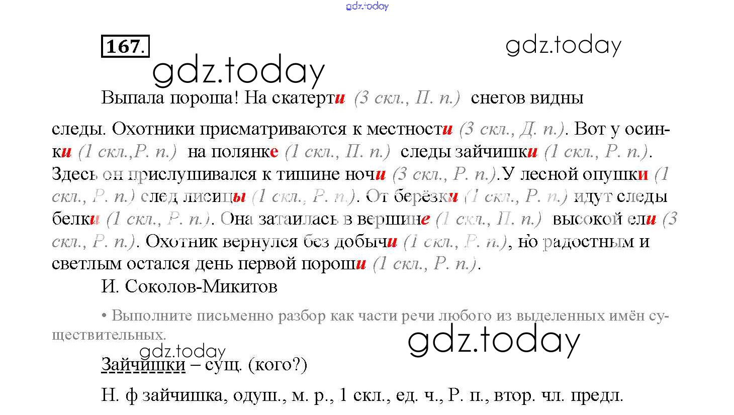 На страницах сайта gdz.today вы найдете учебный и вспомогательный материал, направленный на улучшения знаний школьной программы. ГДЗ - онлайн мир знаний Часть 1. Решение к заданиям 167 Рабочей тетради по Русскому языку для 4 класса Канакина Просвещение Школа России 2013