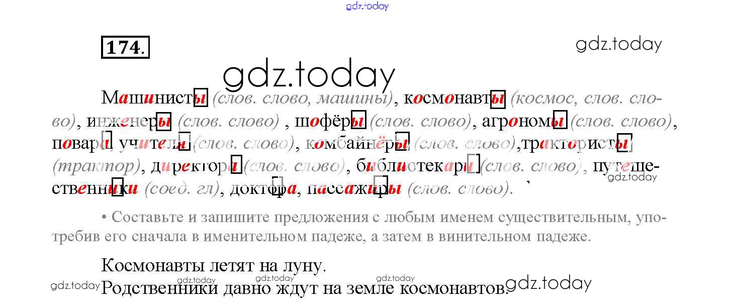 На страницах сайта gdz.today вы найдете учебный и вспомогательный материал, направленный на улучшения знаний школьной программы. ГДЗ - онлайн мир знаний Часть 1. Решение к заданиям 174 Рабочей тетради по Русскому языку для 4 класса Канакина Просвещение Школа России 2013