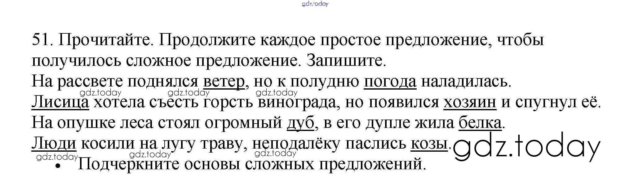 На страницах сайта gdz.today вы найдете учебный и вспомогательный материал, направленный на улучшения знаний школьной программы. ГДЗ - онлайн мир знаний Часть 1. Решение к заданиям 51 Рабочей тетради по Русскому языку для 4 класса Канакина Просвещение Школа России 2013
