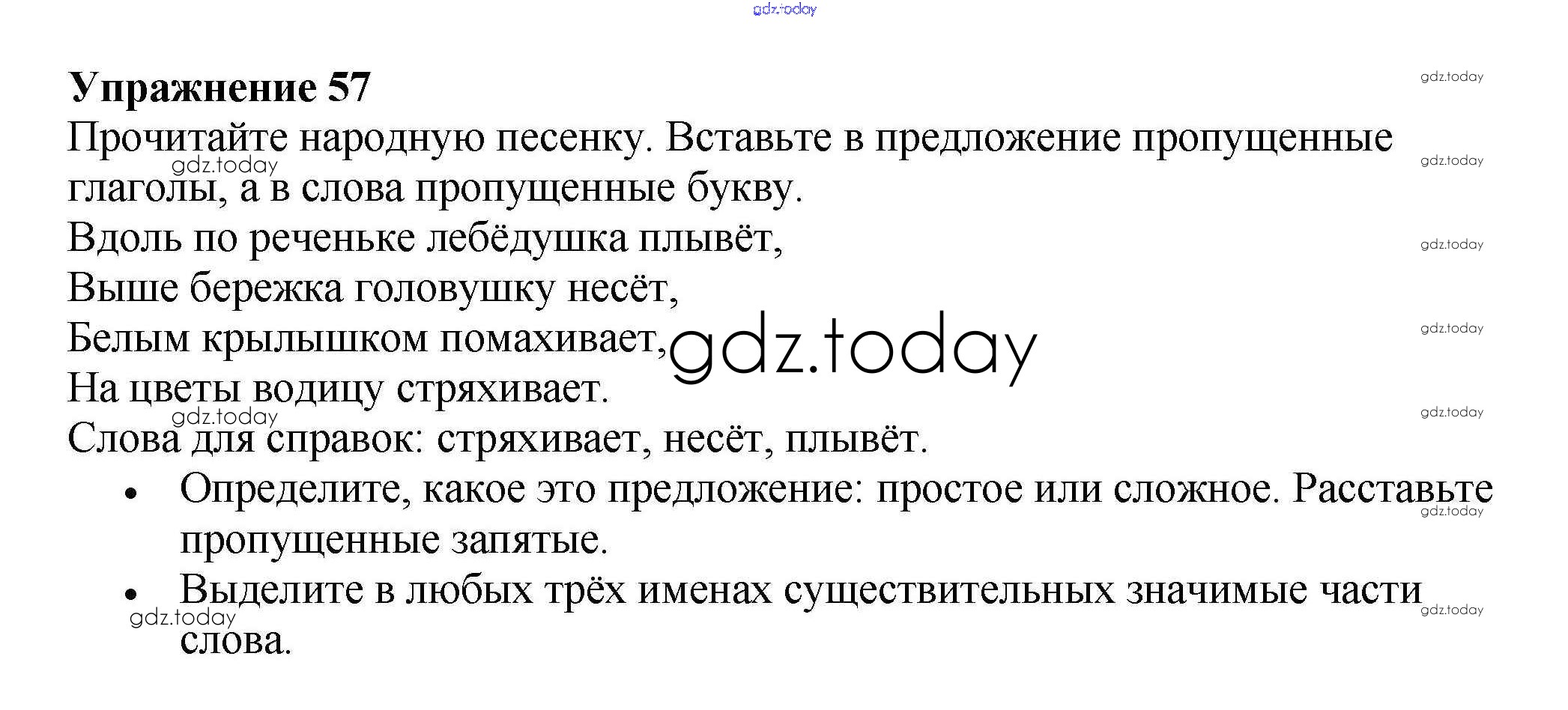 На страницах сайта gdz.today вы найдете учебный и вспомогательный материал, направленный на улучшения знаний школьной программы. ГДЗ - онлайн мир знаний Часть 1. Решение к заданиям 57 Рабочей тетради по Русскому языку для 4 класса Канакина Просвещение Школа России 2013