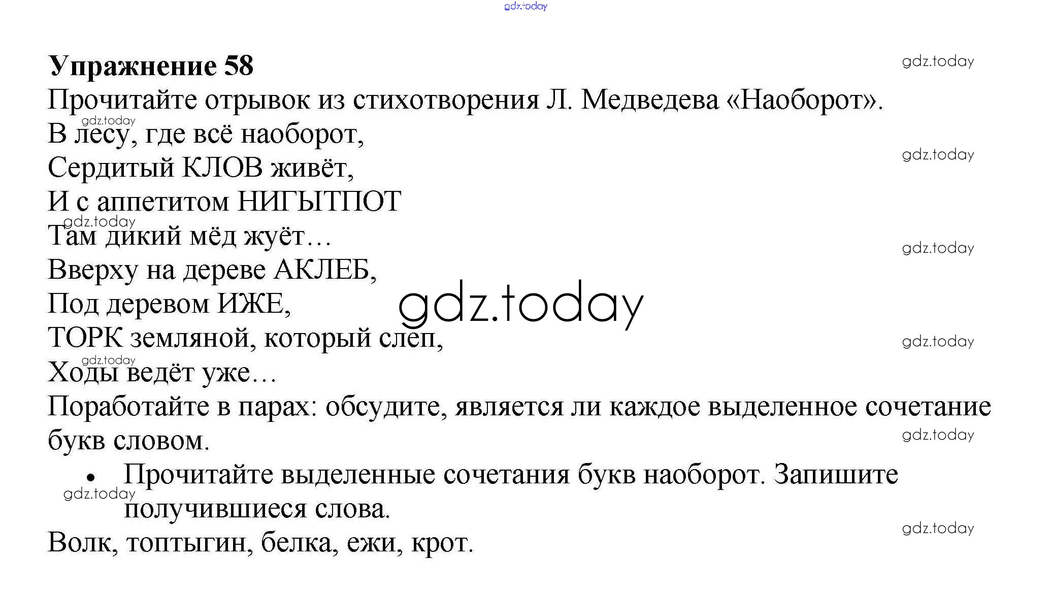 На страницах сайта gdz.today вы найдете учебный и вспомогательный материал, направленный на улучшения знаний школьной программы. ГДЗ - онлайн мир знаний Часть 1. Решение к заданиям 58 Рабочей тетради по Русскому языку для 4 класса Канакина Просвещение Школа России 2013