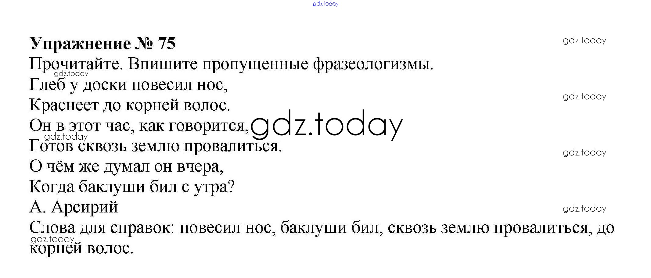 На страницах сайта gdz.today вы найдете учебный и вспомогательный материал, направленный на улучшения знаний школьной программы. ГДЗ - онлайн мир знаний Часть 1. Решение к заданиям 75 Рабочей тетради по Русскому языку для 4 класса Канакина Просвещение Школа России 2013
