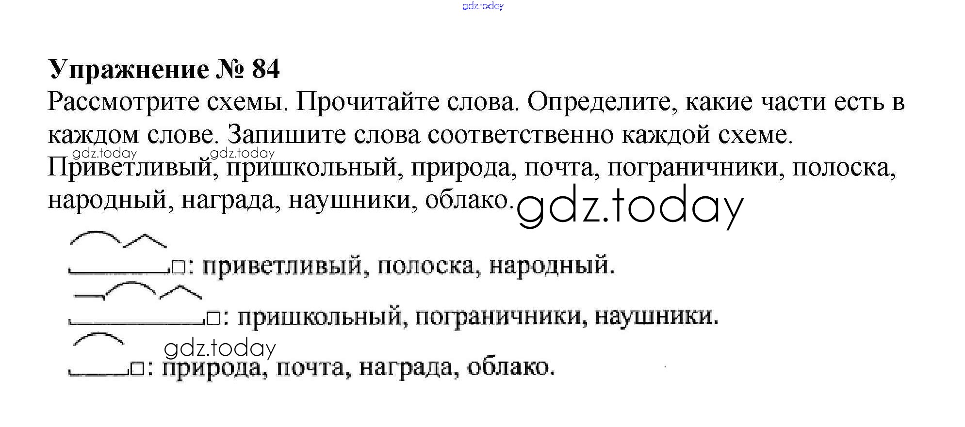 На страницах сайта gdz.today вы найдете учебный и вспомогательный материал, направленный на улучшения знаний школьной программы. ГДЗ - онлайн мир знаний Часть 1. Решение к заданиям 84 Рабочей тетради по Русскому языку для 4 класса Канакина Просвещение Школа России 2013