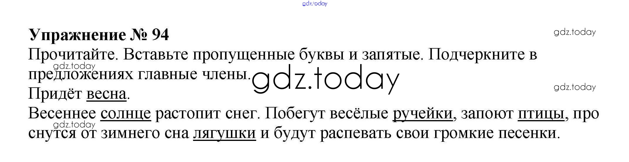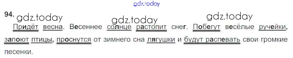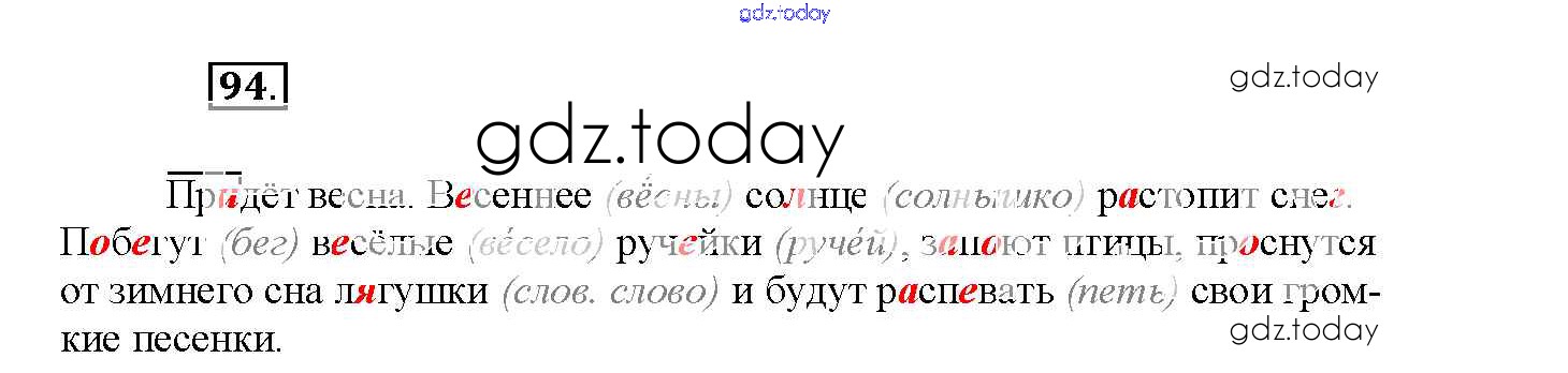 На страницах сайта gdz.today вы найдете учебный и вспомогательный материал, направленный на улучшения знаний школьной программы. ГДЗ - онлайн мир знаний Часть 1. Решение к заданиям 94 Рабочей тетради по Русскому языку для 4 класса Канакина Просвещение Школа России 2013