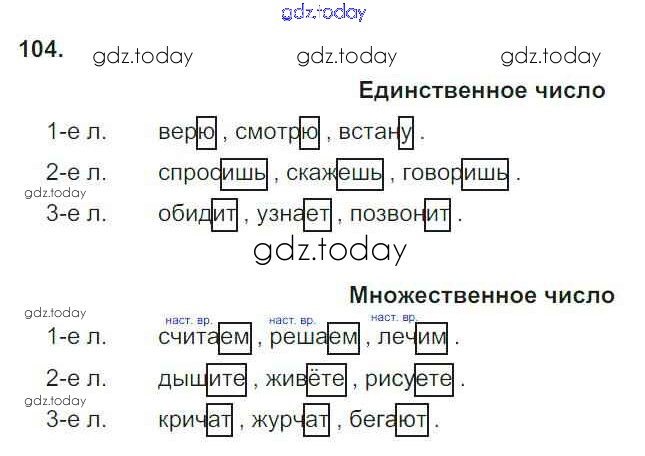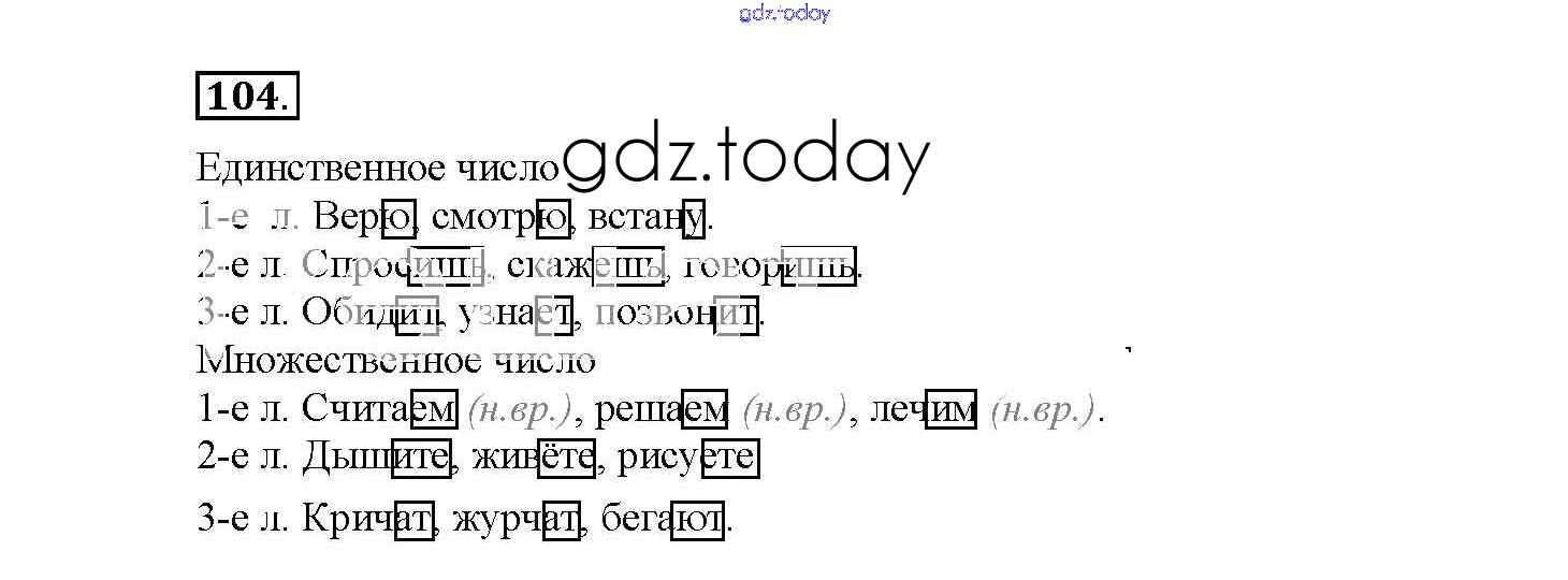 На страницах сайта gdz.today вы найдете учебный и вспомогательный материал, направленный на улучшения знаний школьной программы. ГДЗ - онлайн мир знаний Часть 2. Решение к заданиям 104 Рабочей тетради по Русскому языку для 4 класса Канакина Просвещение Школа России 2013