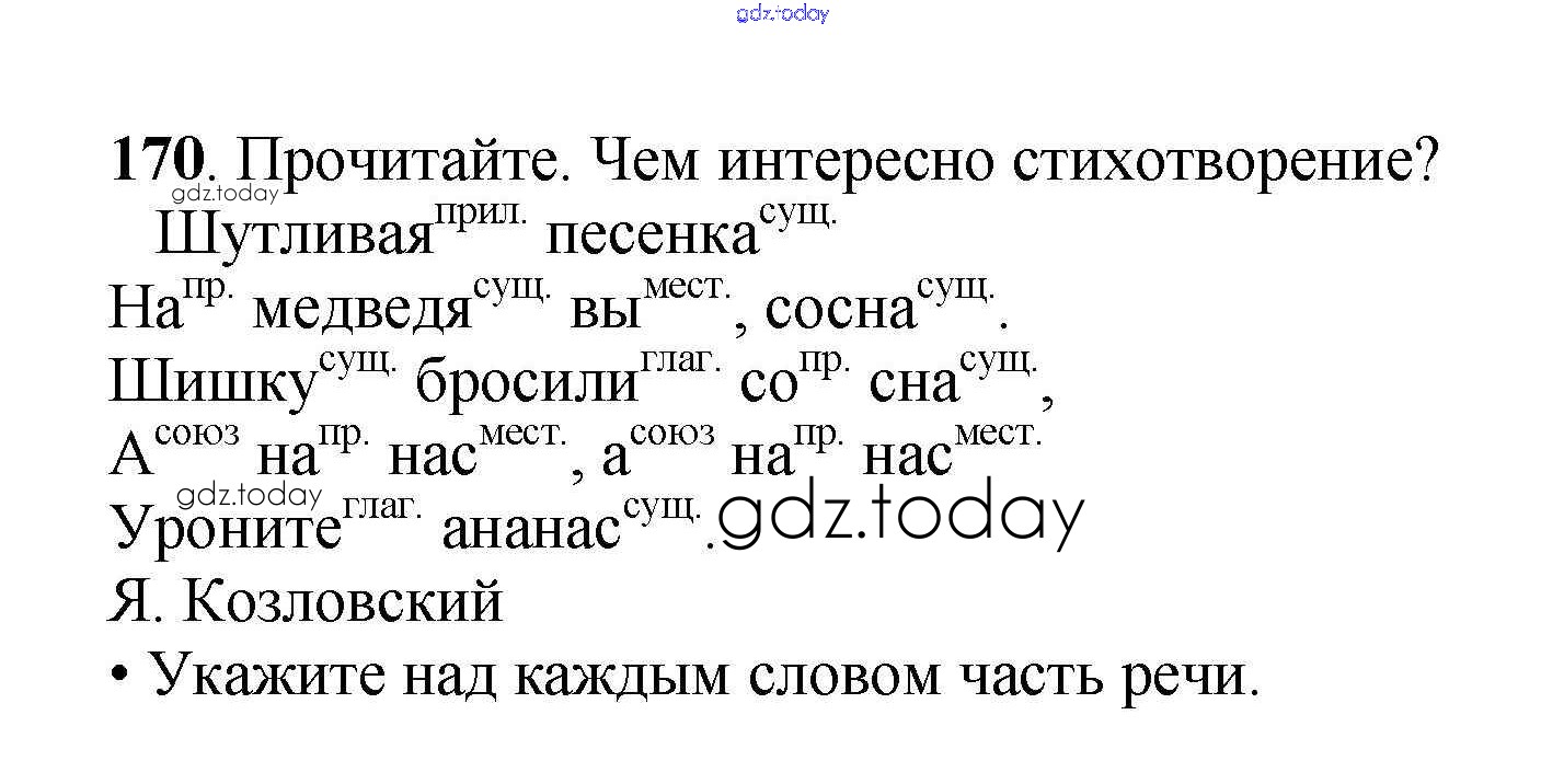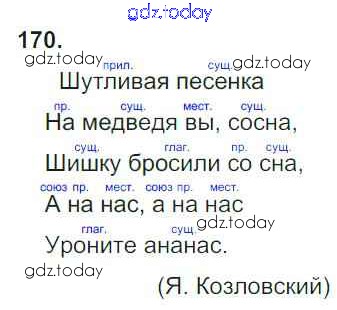 На страницах сайта gdz.today вы найдете учебный и вспомогательный материал, направленный на улучшения знаний школьной программы. ГДЗ - онлайн мир знаний Часть 2. Решение к заданиям 170 Рабочей тетради по Русскому языку для 4 класса Канакина Просвещение Школа России 2013
