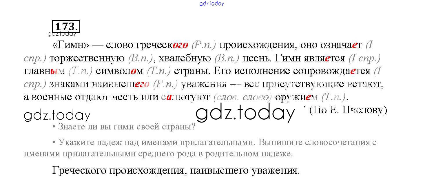 На страницах сайта gdz.today вы найдете учебный и вспомогательный материал, направленный на улучшения знаний школьной программы. ГДЗ - онлайн мир знаний Часть 2. Решение к заданиям 173 Рабочей тетради по Русскому языку для 4 класса Канакина Просвещение Школа России 2013