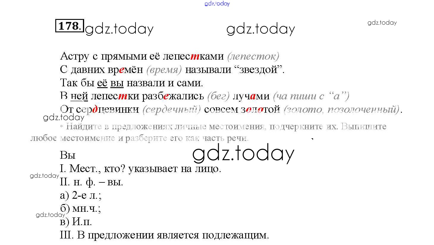 На страницах сайта gdz.today вы найдете учебный и вспомогательный материал, направленный на улучшения знаний школьной программы. ГДЗ - онлайн мир знаний Часть 2. Решение к заданиям 178 Рабочей тетради по Русскому языку для 4 класса Канакина Просвещение Школа России 2013