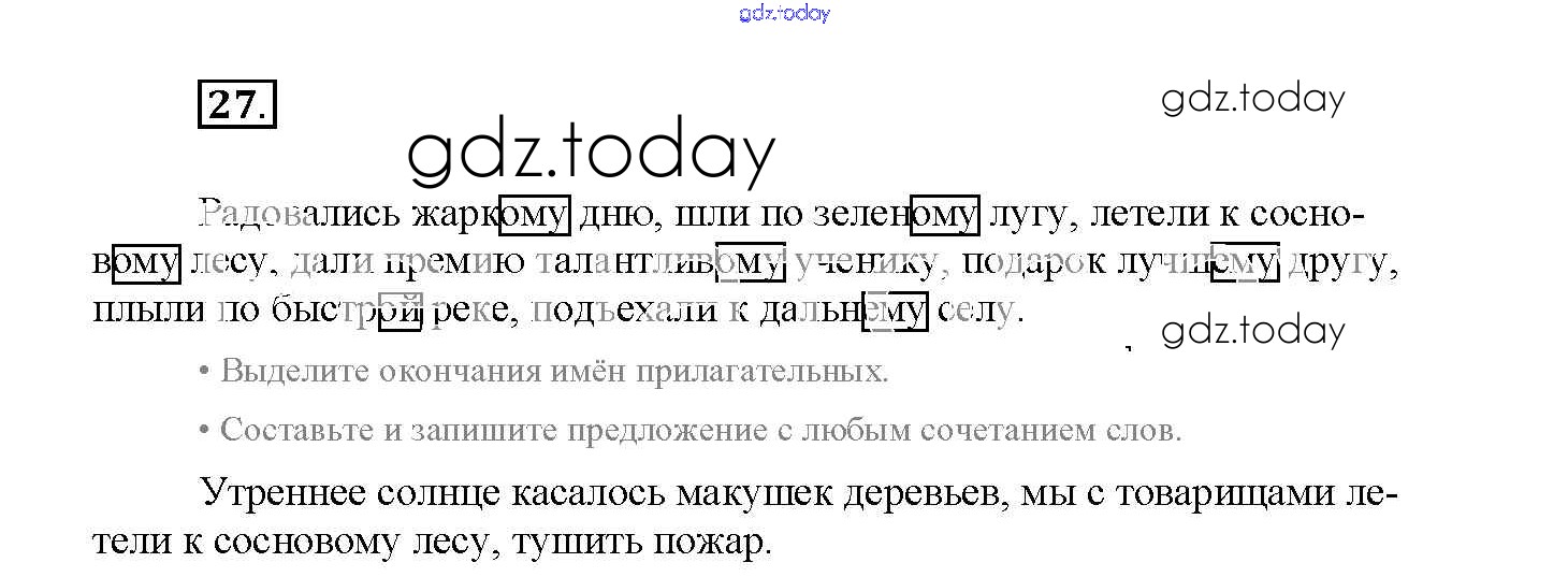 На страницах сайта gdz.today вы найдете учебный и вспомогательный материал, направленный на улучшения знаний школьной программы. ГДЗ - онлайн мир знаний Часть 2. Решение к заданиям 27 Рабочей тетради по Русскому языку для 4 класса Канакина Просвещение Школа России 2013