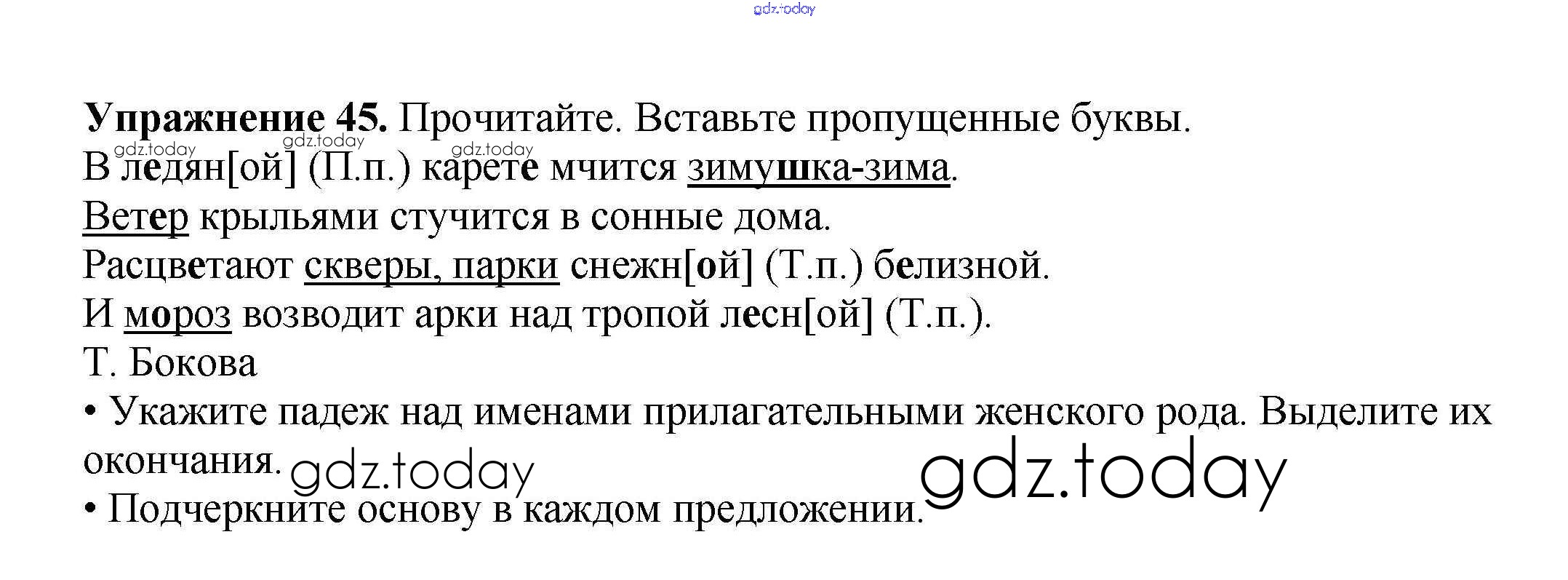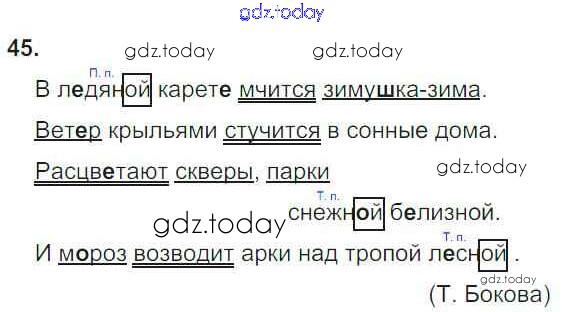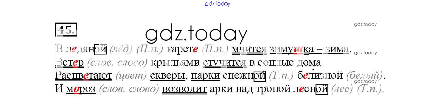 На страницах сайта gdz.today вы найдете учебный и вспомогательный материал, направленный на улучшения знаний школьной программы. ГДЗ - онлайн мир знаний Часть 2. Решение к заданиям 45 Рабочей тетради по Русскому языку для 4 класса Канакина Просвещение Школа России 2013