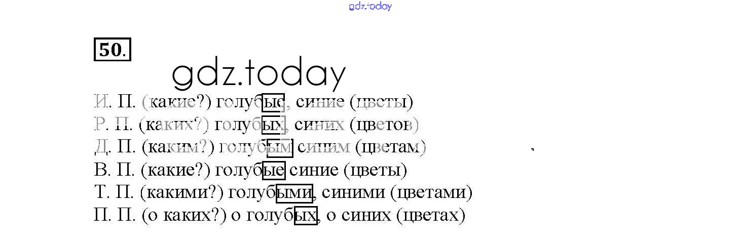 На страницах сайта gdz.today вы найдете учебный и вспомогательный материал, направленный на улучшения знаний школьной программы. ГДЗ - онлайн мир знаний Часть 2. Решение к заданиям 50 Рабочей тетради по Русскому языку для 4 класса Канакина Просвещение Школа России 2013