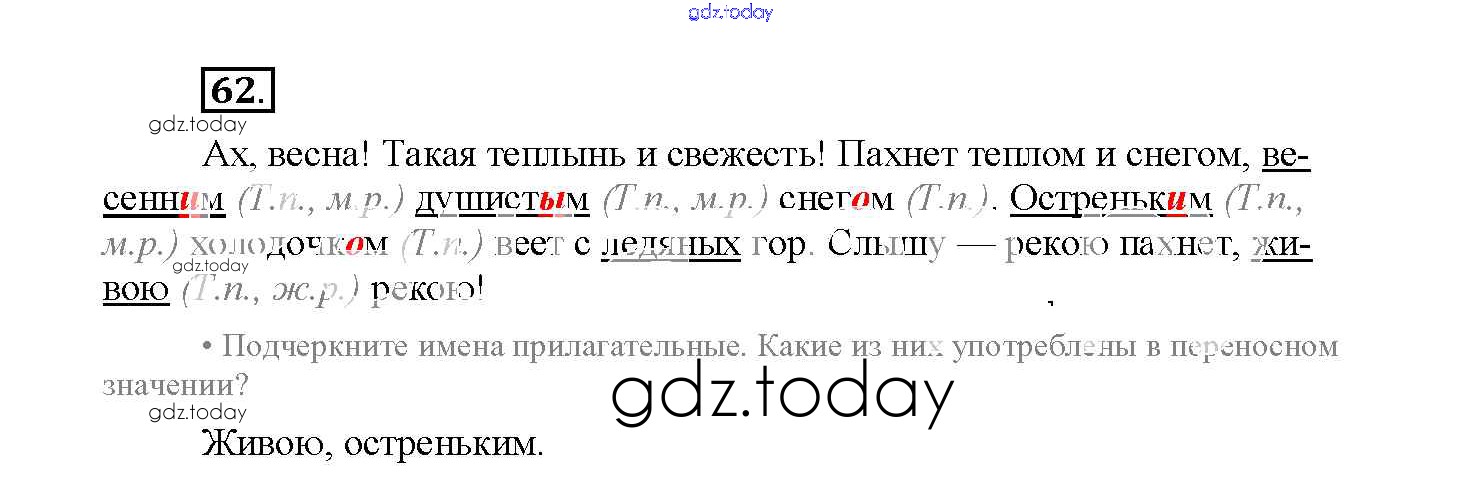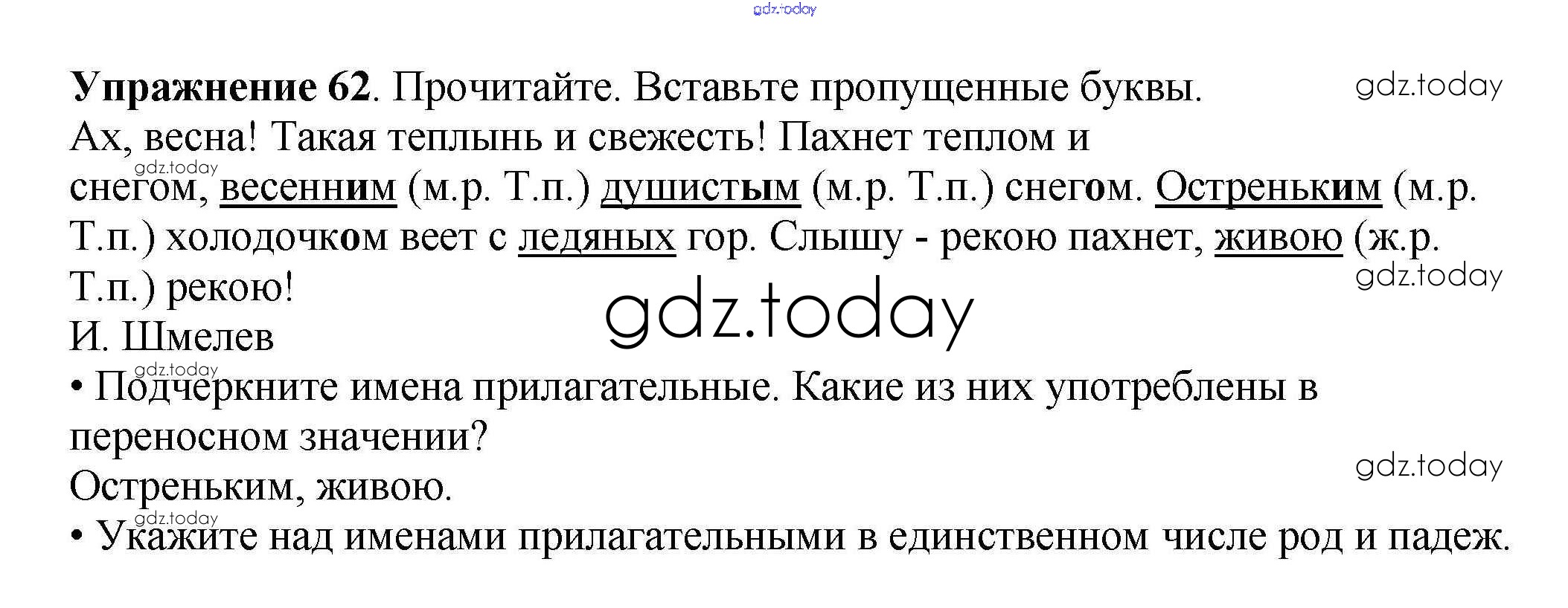 На страницах сайта gdz.today вы найдете учебный и вспомогательный материал, направленный на улучшения знаний школьной программы. ГДЗ - онлайн мир знаний Часть 2. Решение к заданиям 62 Рабочей тетради по Русскому языку для 4 класса Канакина Просвещение Школа России 2013