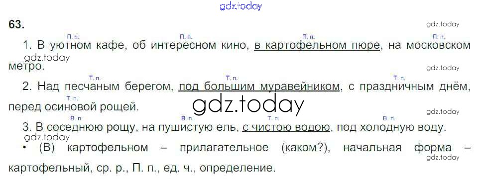 Ответы к Часть 2. Решение к заданиям 63 Рабочей тетради по Русскому языку для 4 класса Канакина Просвещение Школа России 2013