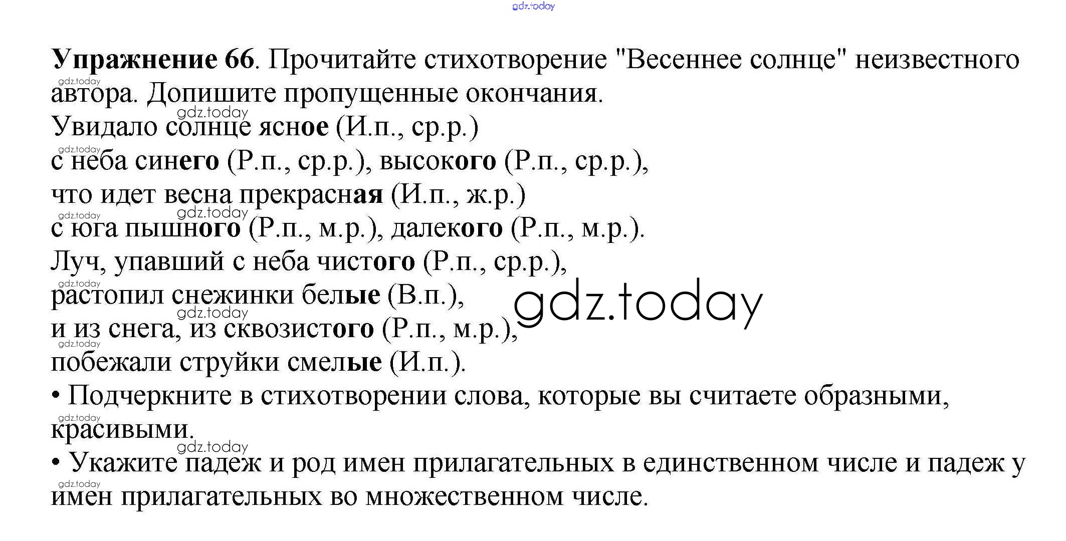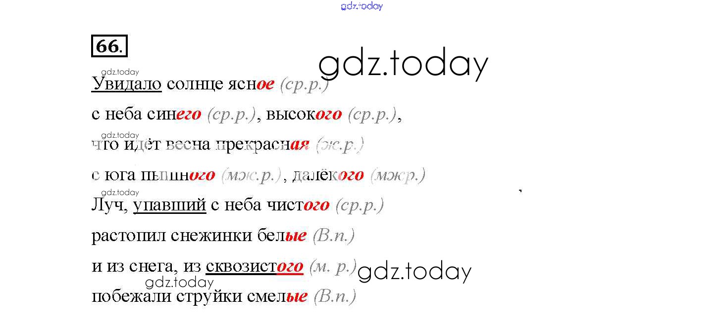 На страницах сайта gdz.today вы найдете учебный и вспомогательный материал, направленный на улучшения знаний школьной программы. ГДЗ - онлайн мир знаний Часть 2. Решение к заданиям 66 Рабочей тетради по Русскому языку для 4 класса Канакина Просвещение Школа России 2013