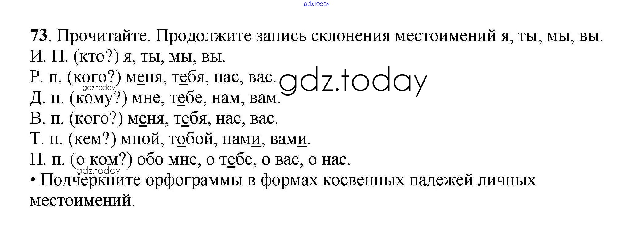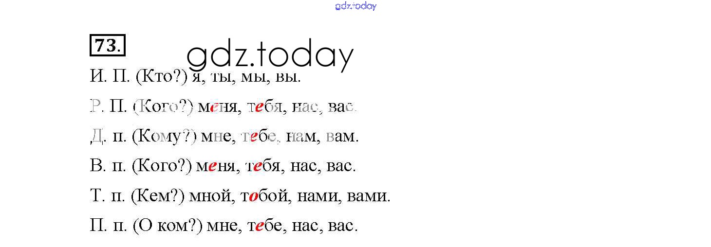 На страницах сайта gdz.today вы найдете учебный и вспомогательный материал, направленный на улучшения знаний школьной программы. ГДЗ - онлайн мир знаний Часть 2. Решение к заданиям 73 Рабочей тетради по Русскому языку для 4 класса Канакина Просвещение Школа России 2013