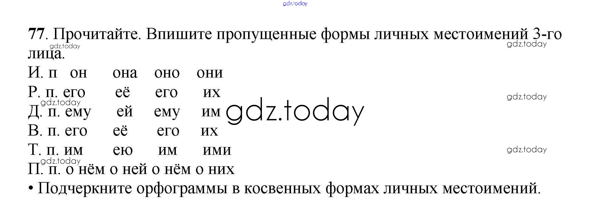 На страницах сайта gdz.today вы найдете учебный и вспомогательный материал, направленный на улучшения знаний школьной программы. ГДЗ - онлайн мир знаний Часть 2. Решение к заданиям 77 Рабочей тетради по Русскому языку для 4 класса Канакина Просвещение Школа России 2013