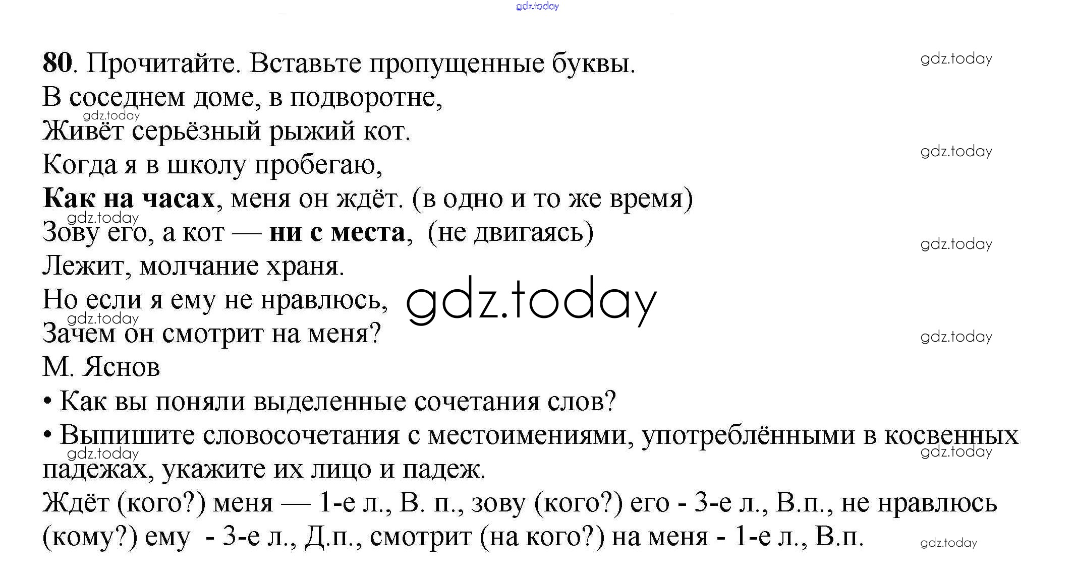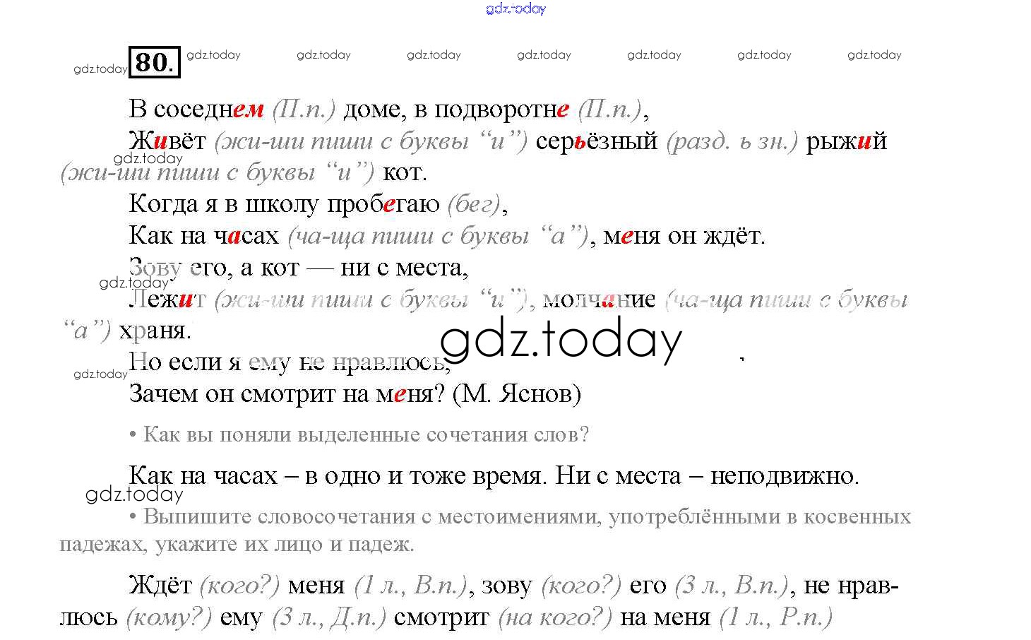 На страницах сайта gdz.today вы найдете учебный и вспомогательный материал, направленный на улучшения знаний школьной программы. ГДЗ - онлайн мир знаний Часть 2. Решение к заданиям 80 Рабочей тетради по Русскому языку для 4 класса Канакина Просвещение Школа России 2013