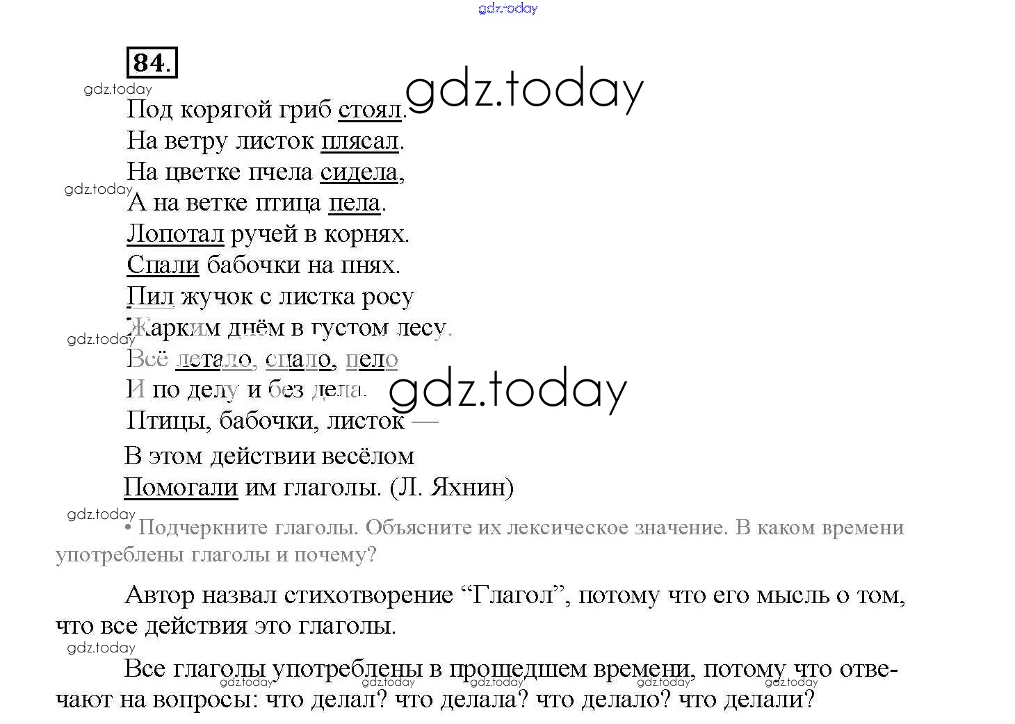 На страницах сайта gdz.today вы найдете учебный и вспомогательный материал, направленный на улучшения знаний школьной программы. ГДЗ - онлайн мир знаний Часть 2. Решение к заданиям 84 Рабочей тетради по Русскому языку для 4 класса Канакина Просвещение Школа России 2013