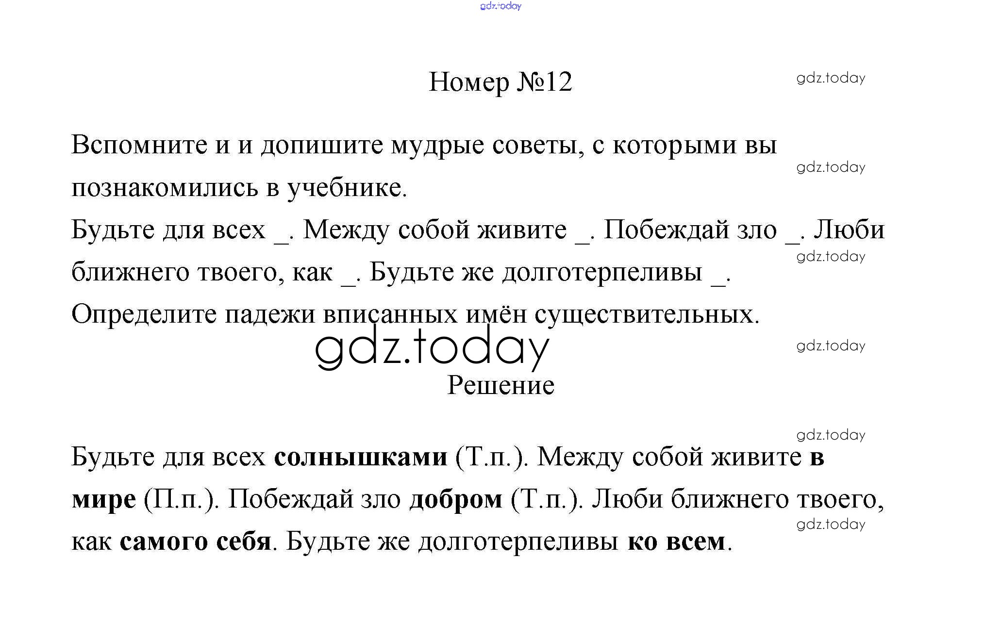 На страницах сайта gdz.today вы найдете учебный и вспомогательный материал, направленный на улучшения знаний школьной программы. ГДЗ - онлайн мир знаний Решение к части 1. Задания 12 Рабочей тетради по Русскому языку для 4 класса Климанова Просвещение Перспектива 2016