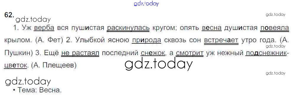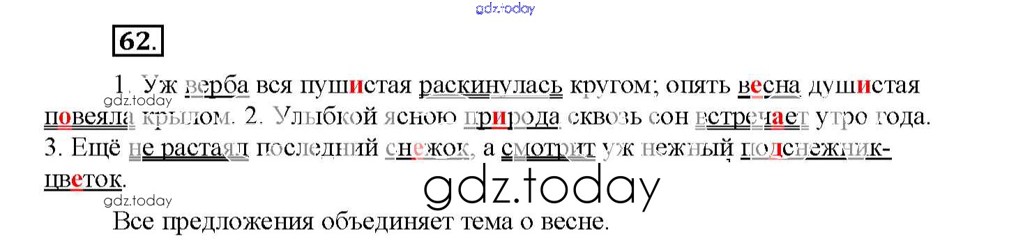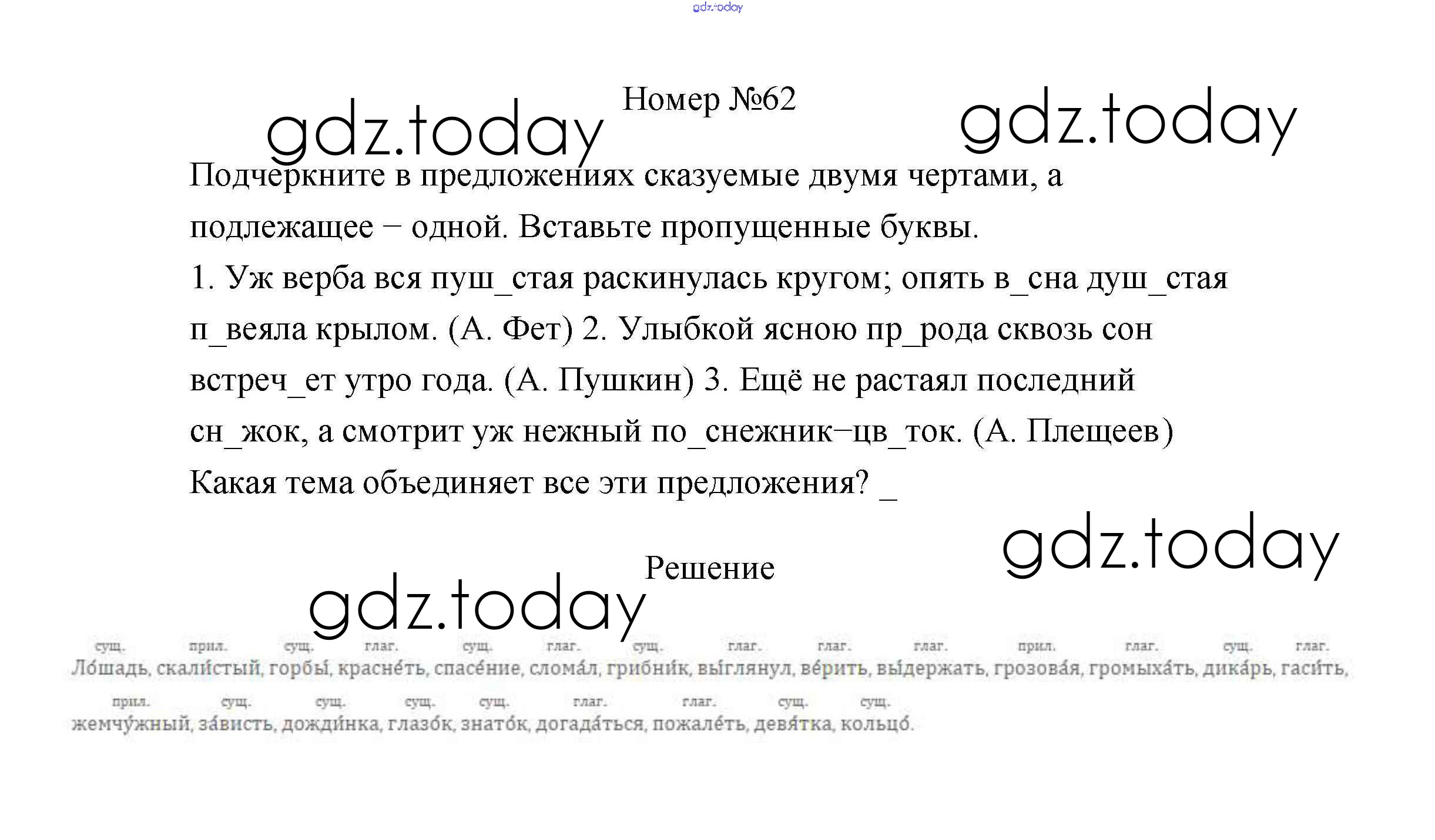 На страницах сайта gdz.today вы найдете учебный и вспомогательный материал, направленный на улучшения знаний школьной программы. ГДЗ - онлайн мир знаний Решение к части 1. Задания 62 Рабочей тетради по Русскому языку для 4 класса Климанова Просвещение Перспектива 2016