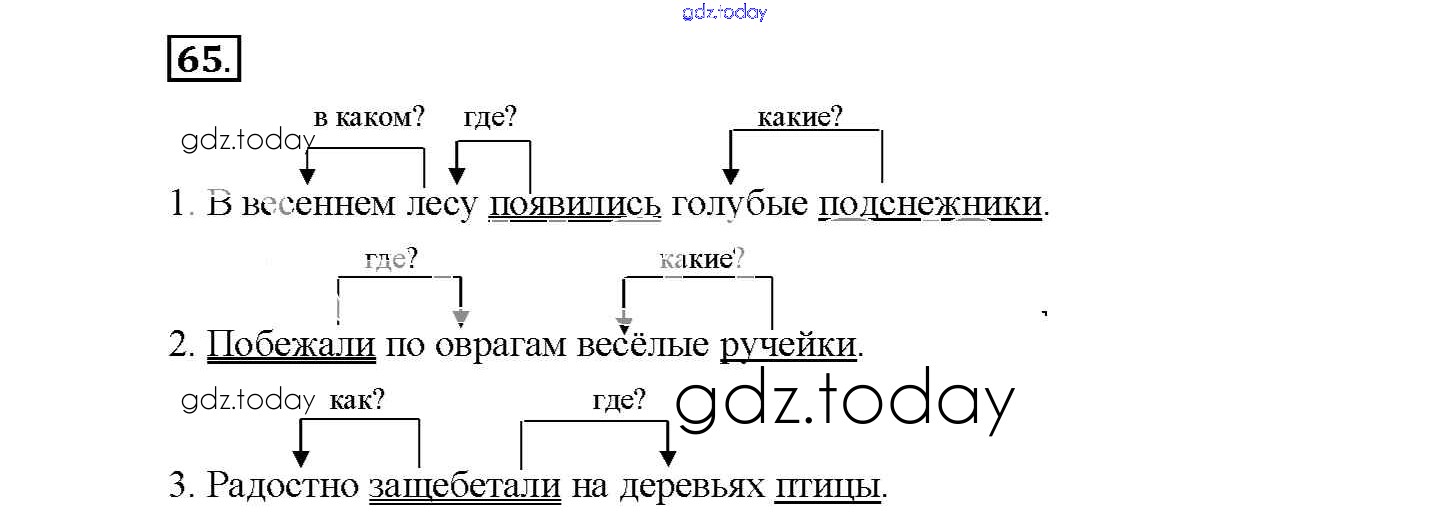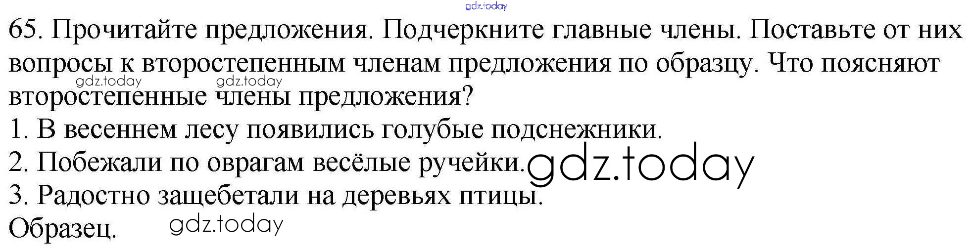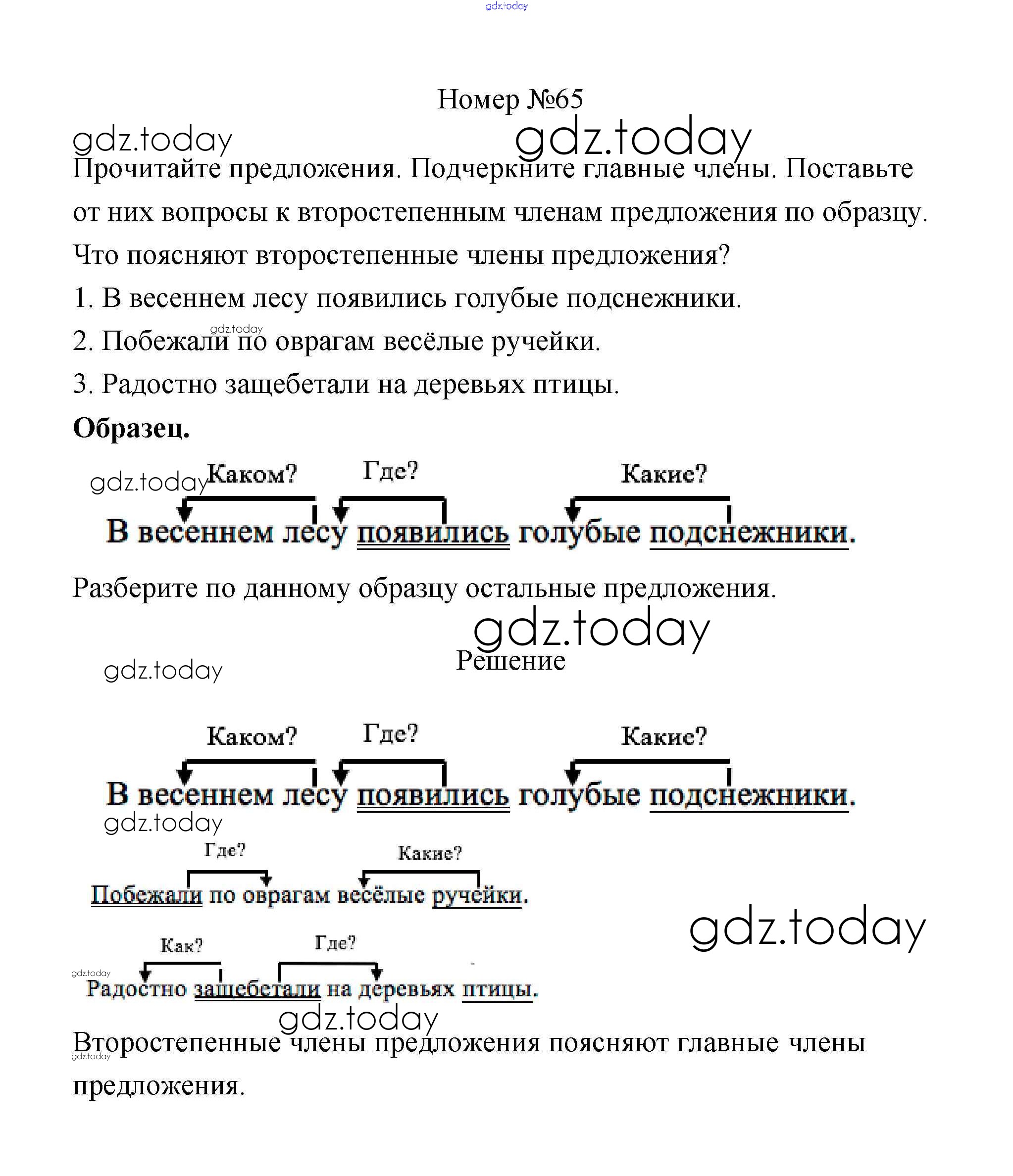 На страницах сайта gdz.today вы найдете учебный и вспомогательный материал, направленный на улучшения знаний школьной программы. ГДЗ - онлайн мир знаний Решение к части 1. Задания 65 Рабочей тетради по Русскому языку для 4 класса Климанова Просвещение Перспектива 2016