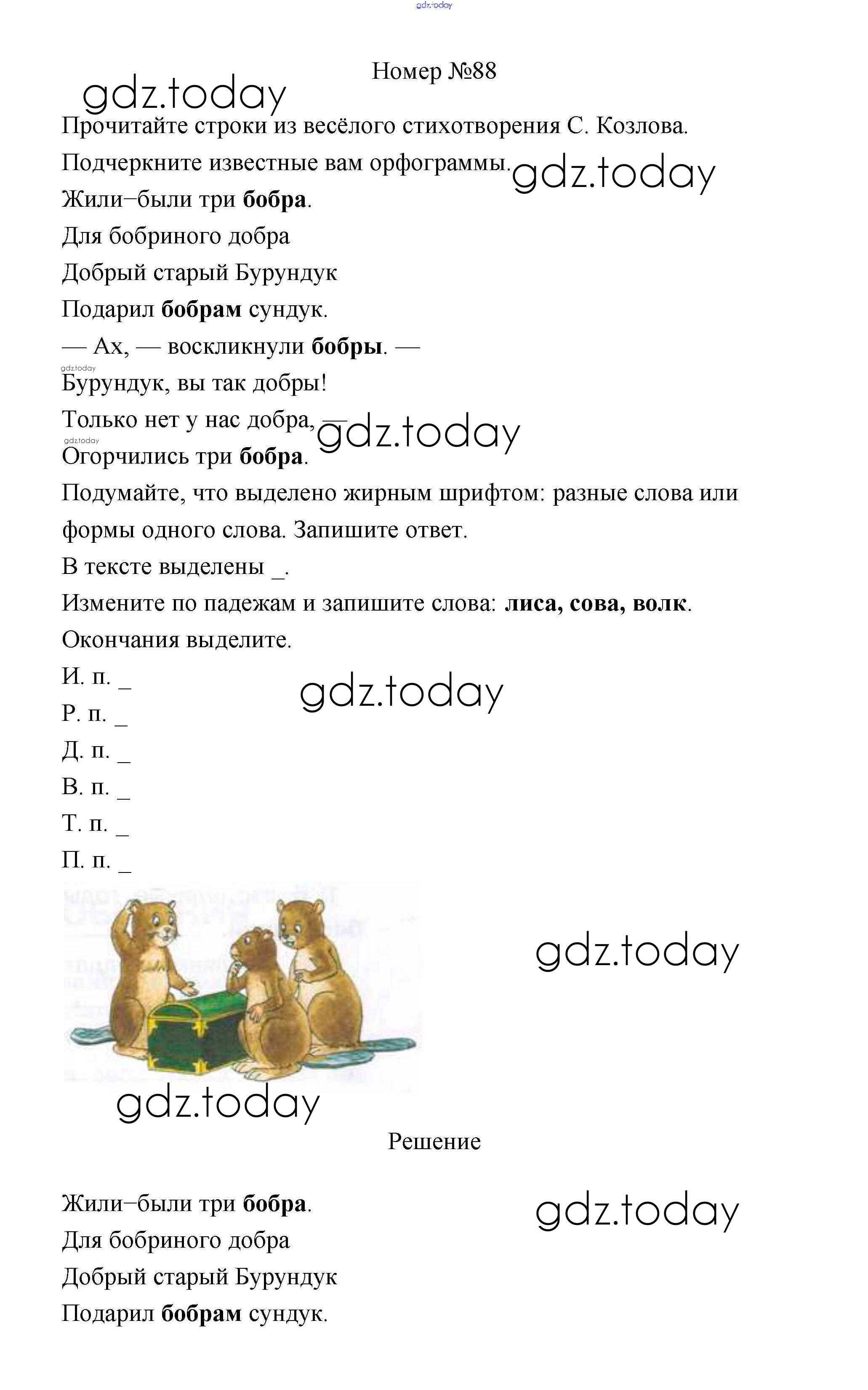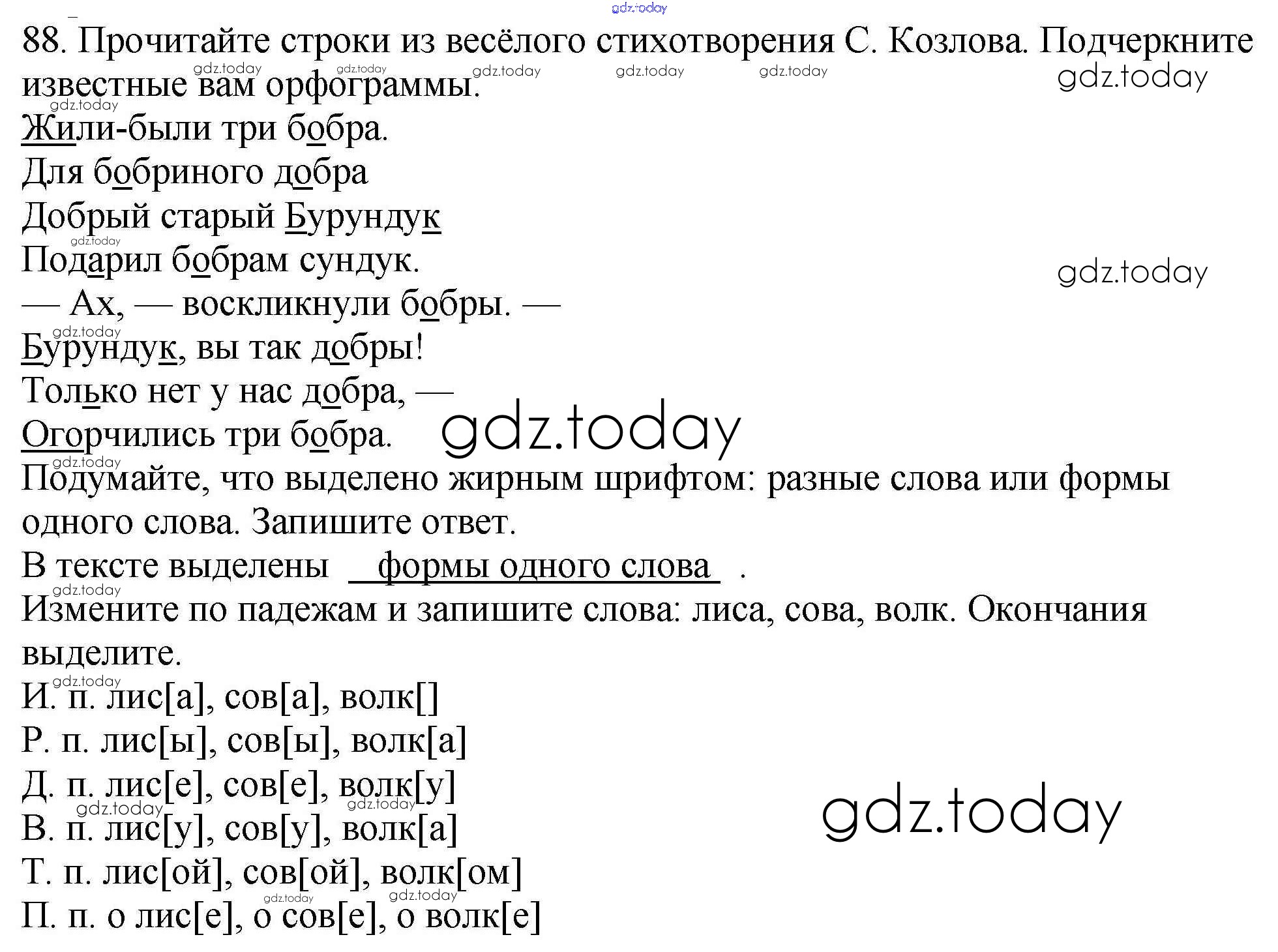 На страницах сайта gdz.today вы найдете учебный и вспомогательный материал, направленный на улучшения знаний школьной программы. ГДЗ - онлайн мир знаний Решение к части 1. Задания 88 Рабочей тетради по Русскому языку для 4 класса Климанова Просвещение Перспектива 2016