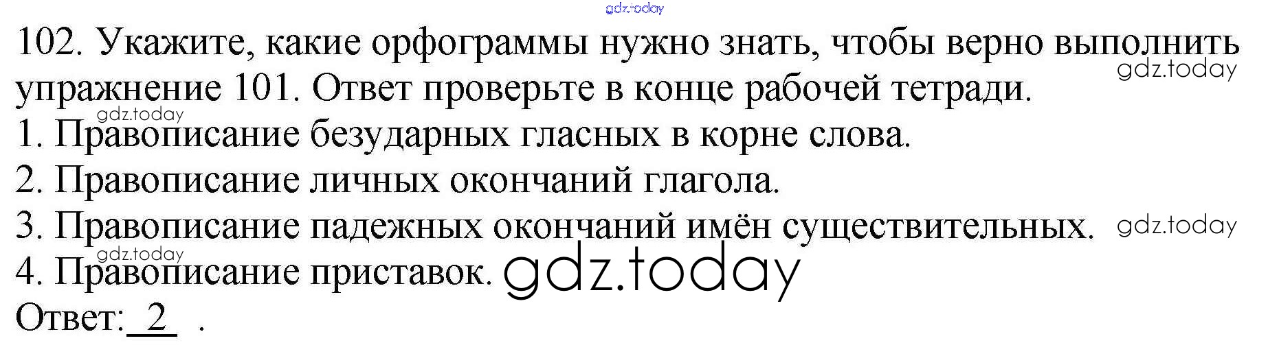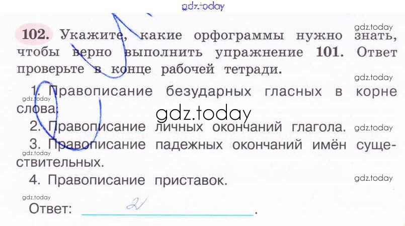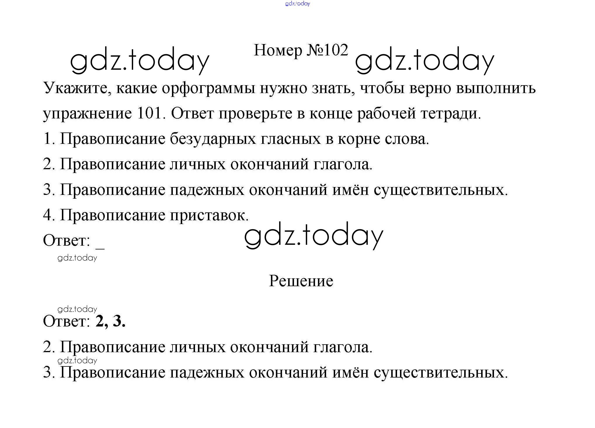 На страницах сайта gdz.today вы найдете учебный и вспомогательный материал, направленный на улучшения знаний школьной программы. ГДЗ - онлайн мир знаний Решение к части 2. Задания 102 Рабочей тетради по Русскому языку для 4 класса Климанова Просвещение Перспектива 2016