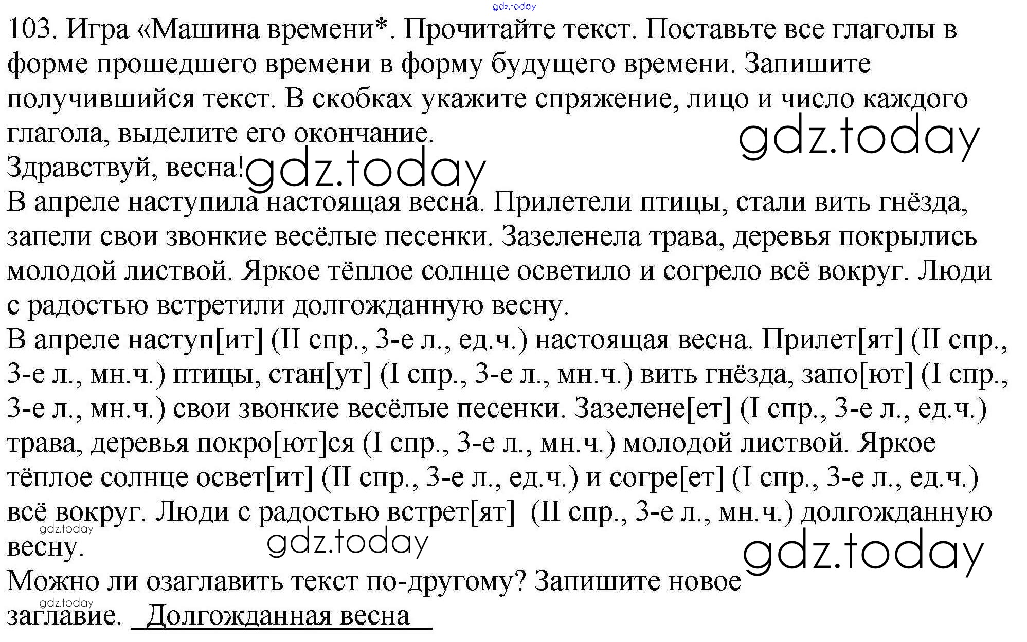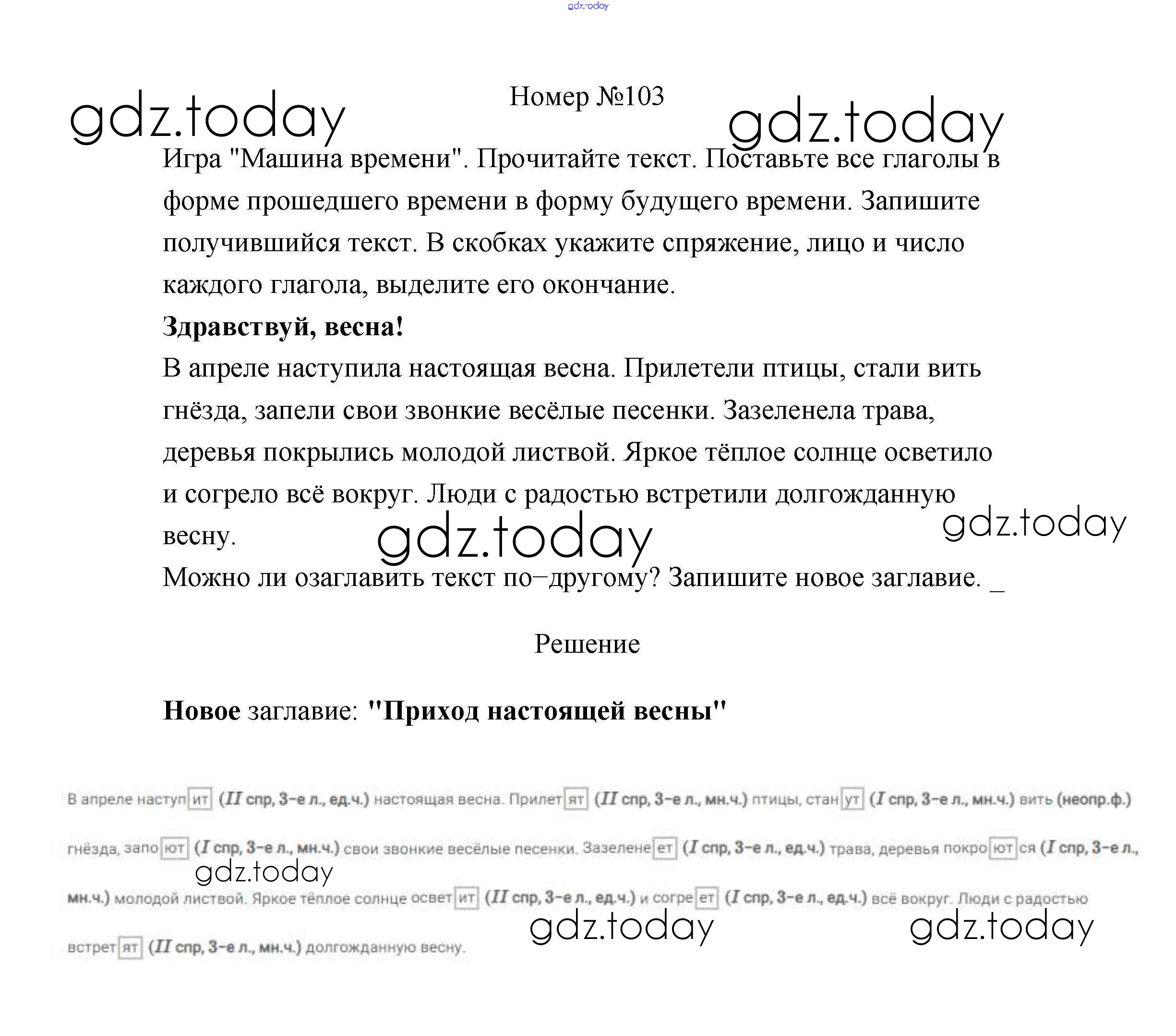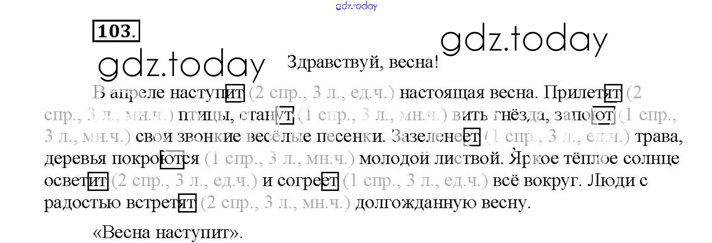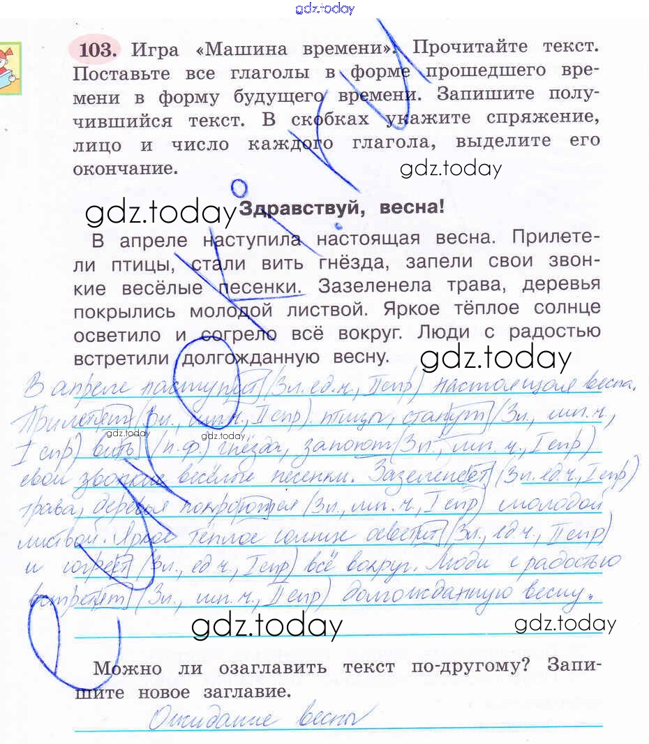 На страницах сайта gdz.today вы найдете учебный и вспомогательный материал, направленный на улучшения знаний школьной программы. ГДЗ - онлайн мир знаний Решение к части 2. Задания 103 Рабочей тетради по Русскому языку для 4 класса Климанова Просвещение Перспектива 2016