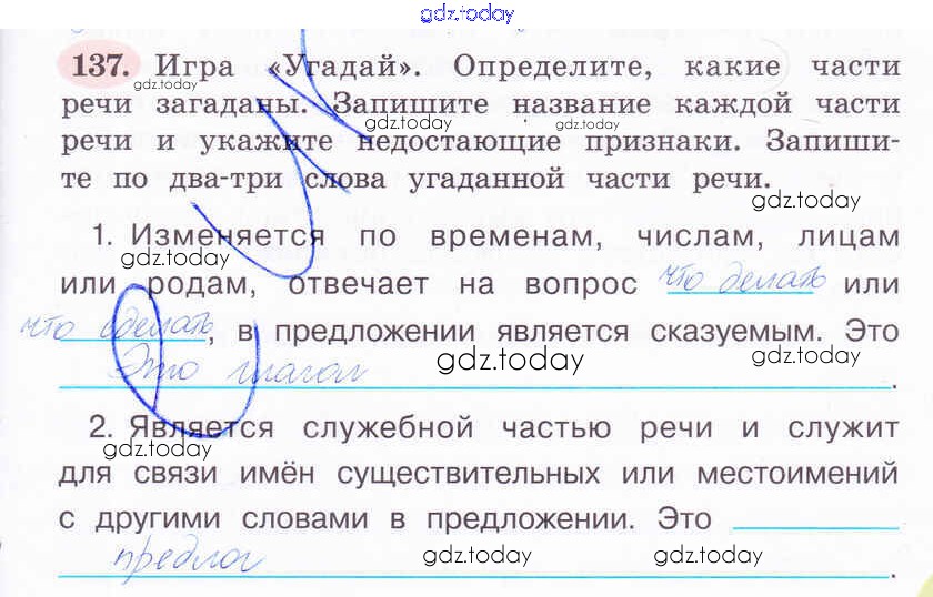 На страницах сайта gdz.today вы найдете учебный и вспомогательный материал, направленный на улучшения знаний школьной программы. ГДЗ - онлайн мир знаний Решение к части 2. Задания 137 Рабочей тетради по Русскому языку для 4 класса Климанова Просвещение Перспектива 2016