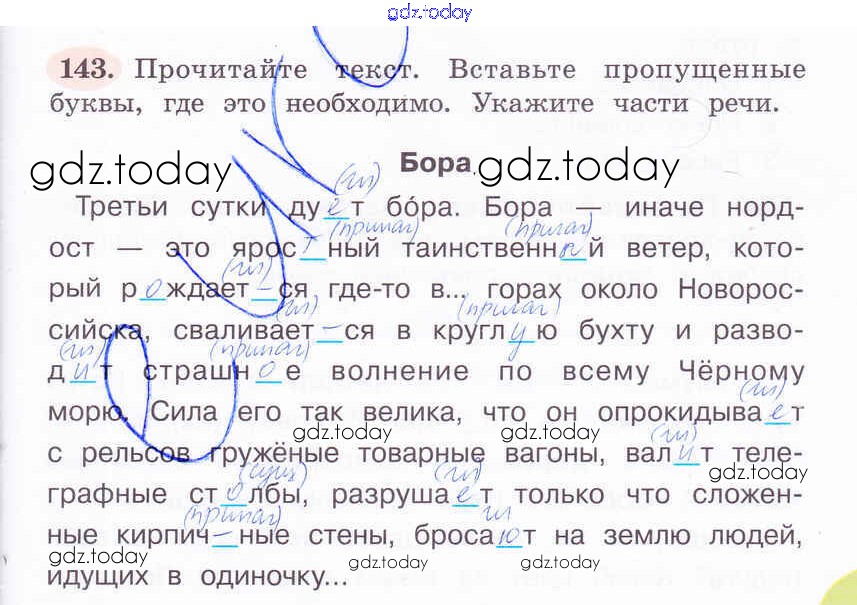 На страницах сайта gdz.today вы найдете учебный и вспомогательный материал, направленный на улучшения знаний школьной программы. ГДЗ - онлайн мир знаний Решение к части 2. Задания 143 Рабочей тетради по Русскому языку для 4 класса Климанова Просвещение Перспектива 2016