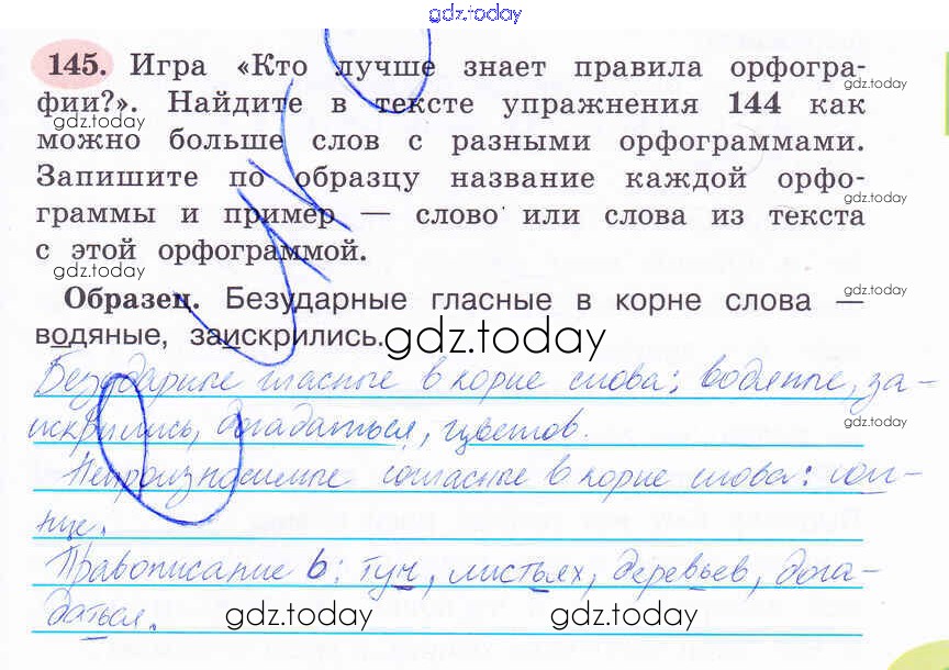 На страницах сайта gdz.today вы найдете учебный и вспомогательный материал, направленный на улучшения знаний школьной программы. ГДЗ - онлайн мир знаний Решение к части 2. Задания 145 Рабочей тетради по Русскому языку для 4 класса Климанова Просвещение Перспектива 2016